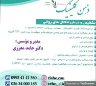 مرکز تخصصی مشاوره و روان شناسی ذهن کلینیکجناب آقای دکتر حامد معززیدکتری تخصصی روان شناسی عضو هیئت علمی دانشگاهمدیر و موسس مرکز مشاوره ذهن کلینیک دارای پروانه تخصصی از سازمان نظام روان شناسی و مشاور کشور به شماره: 6376برگزاری کارگاه تخصصی رفتار درمانی دیالکتیک DBT ویژه تمامی مشاوران و روان شناسان کشور برگزاری سلسه کارگاه های دیالکتیک و تربیت خویشتن ویژه عموم مردممرکز تخصصی روان شناسی و مشاوره ذهن کلینیک با مدیریت دکتر حامد معززی تمامی همکاران روان شناس مرکز بصورت تخصصی در یک زمینه خاص مدرک مرتبط (پروانه اشتغال از سازمان نظام روان شناسی) و با تجربه بالایی در زمینه تخصصی کاری خود هستند.تشخیص و درمان اختلالات روانی مشاوره فردیمشاوره پیش از ازدواج زوج درمانی ارزیابی، تشخیص و درمان اختلال های وسواس،اضطراب و شخصیت خانواده درمانیمشاوره شغلی، مشاوره تحصیلی، مشاوره طلاق مشاوره کودک و نوجواندرمان اختلالات یادگیری هدایت تحصیلی بصورت تخصصی از پایه نهم تا کنکور و انتخاب رشته• آموزش ریلکسیشن و کاهش استرس • تشخیص اختلال نقص توجه و بیش فعالی (ADHD) • برنامه ریزی تحصیلی • روشها و فنون تندخوانی • تکنی