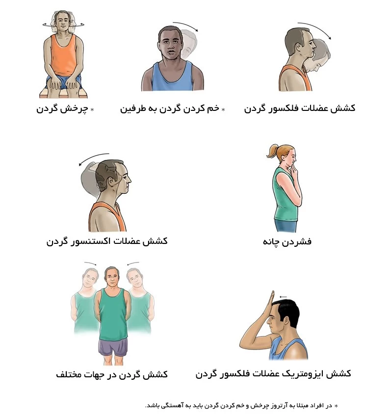تمریناتی که در تصاویر زیر مشاهده می کنید، می توانند برای بهبود وضعیت آرتروز و درد گردن موثر باشند: