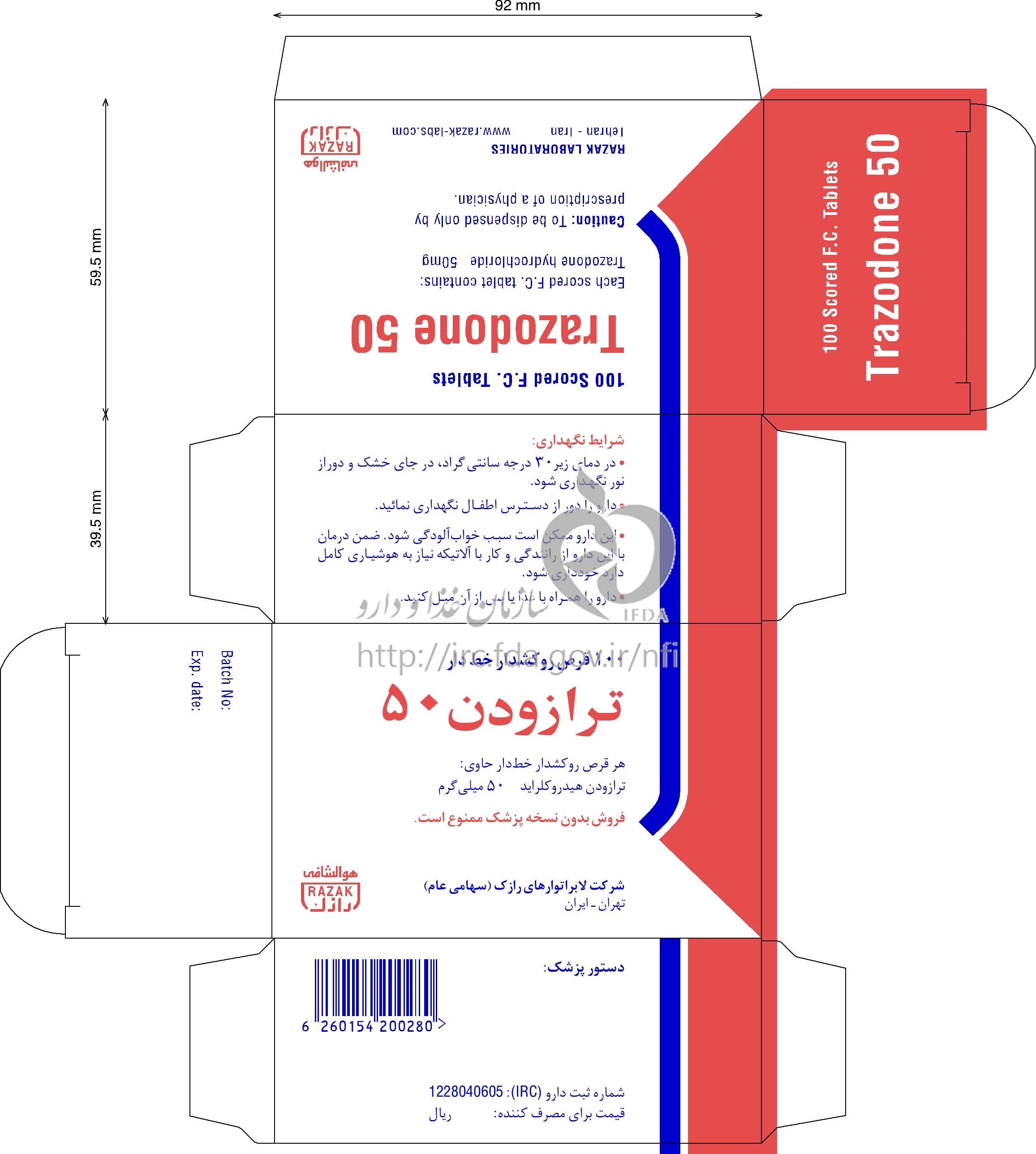 1- مصرف این دارو بایستی حداقل 2 هفته پس از قطع مصرف داروی ضدافسردگی مهارکننده آنزیم مونوآمین اکسیداز شروع شود. با این وجود حداقل یک هفته پس از قطع مصرف این دارو، می ‌توان مصرف سایر دارو ‌های ضدافسردگی را آغاز نمود.2- قبل از قطع مصرف دارو، بايد به پزشك مراجعه شود. مصرف اين دارو بايد به تدريج قطع شود.3- به دليل بروز احتمال سرگيجه، هنگام رانندگي يا كار با ماشين‎‎ آلاتي كه نياز به هوشياري دارند، بايد احتياط نمود.4- به دليل بروز سرگيجه، هنگام برخاستن ناگهاني از حالت خوابيده يا نشسته بايد احتياط نمود.5- اگر به دلیل مصرف ترازودون، نعوظ مداوم رخ دهد، مصرف دارو باید قطع گردد.