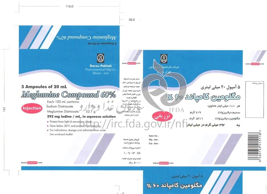 مگلومین کامپاند تزریقی پرنترال 52.1 %/7.9 % 20MILLILITER