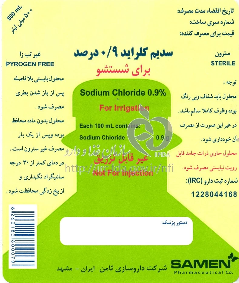 سدیم کلراید محلول جهت شستشو 0.9 % 500MILLILITER