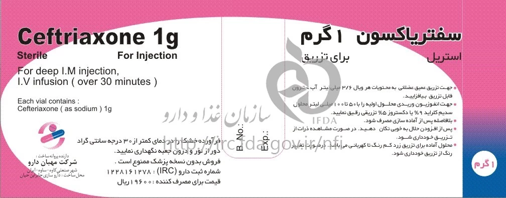 ثبت نظر سفتریاکسون 1 گرم