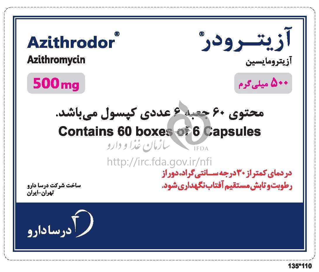 موارد مصرف آزیترودر کپسول خوراکی 500 mg