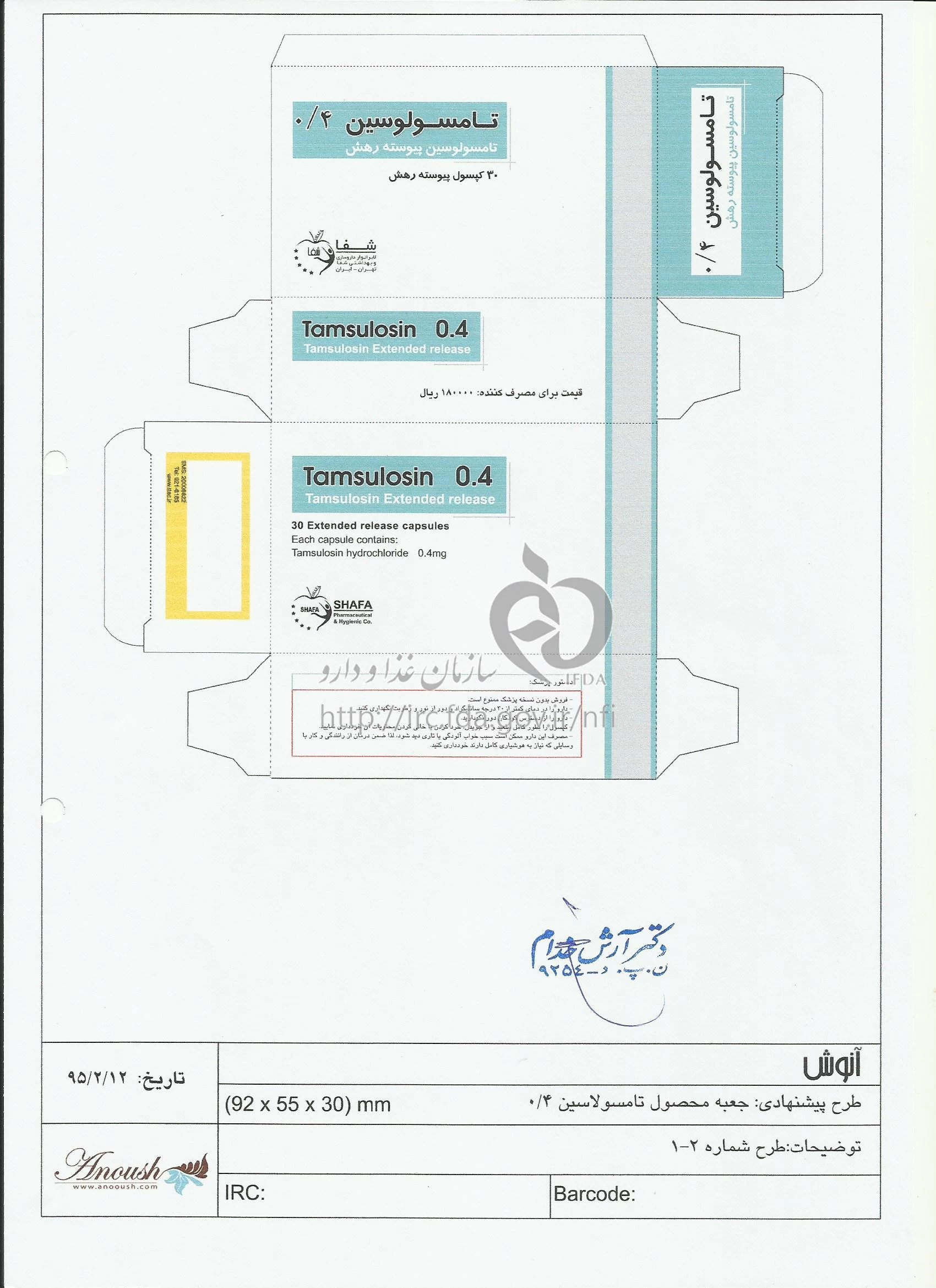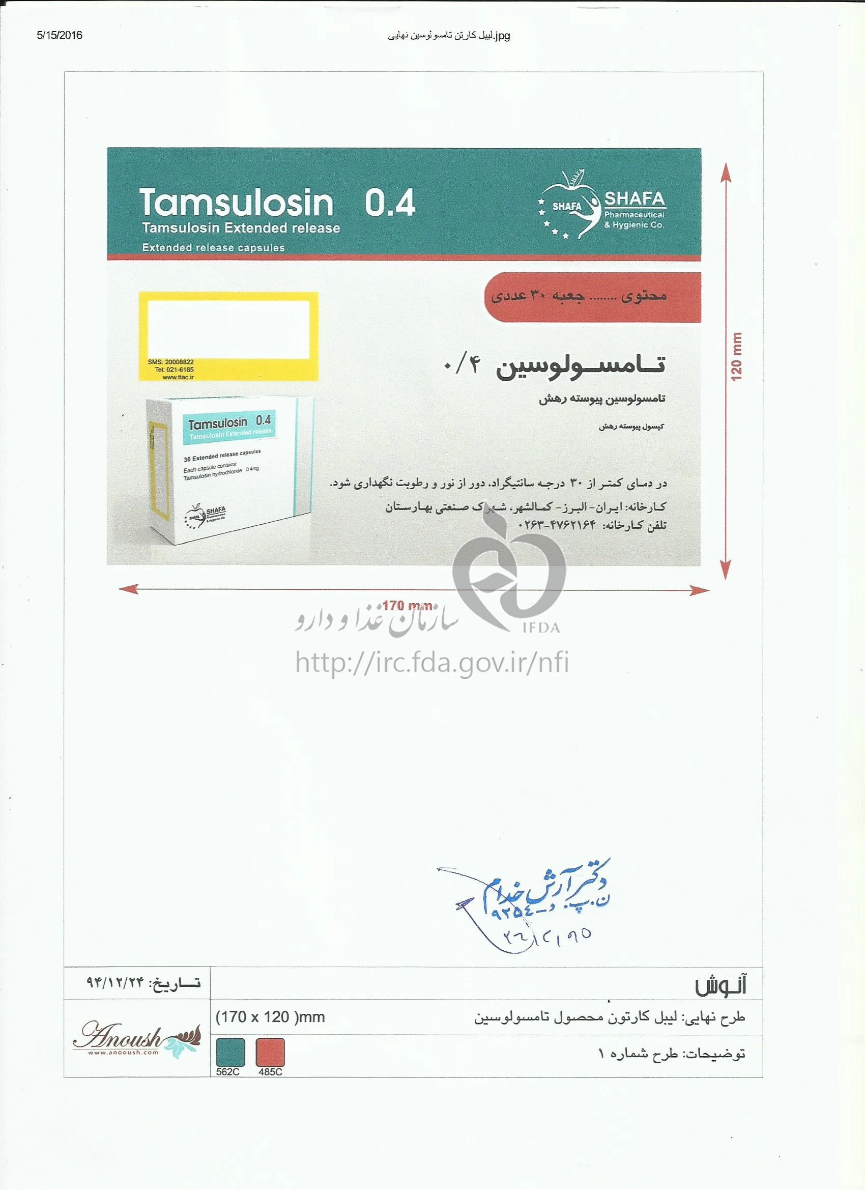 تامسولوسین کپسول پیوسته رهش خوراکی 0.4 mg
