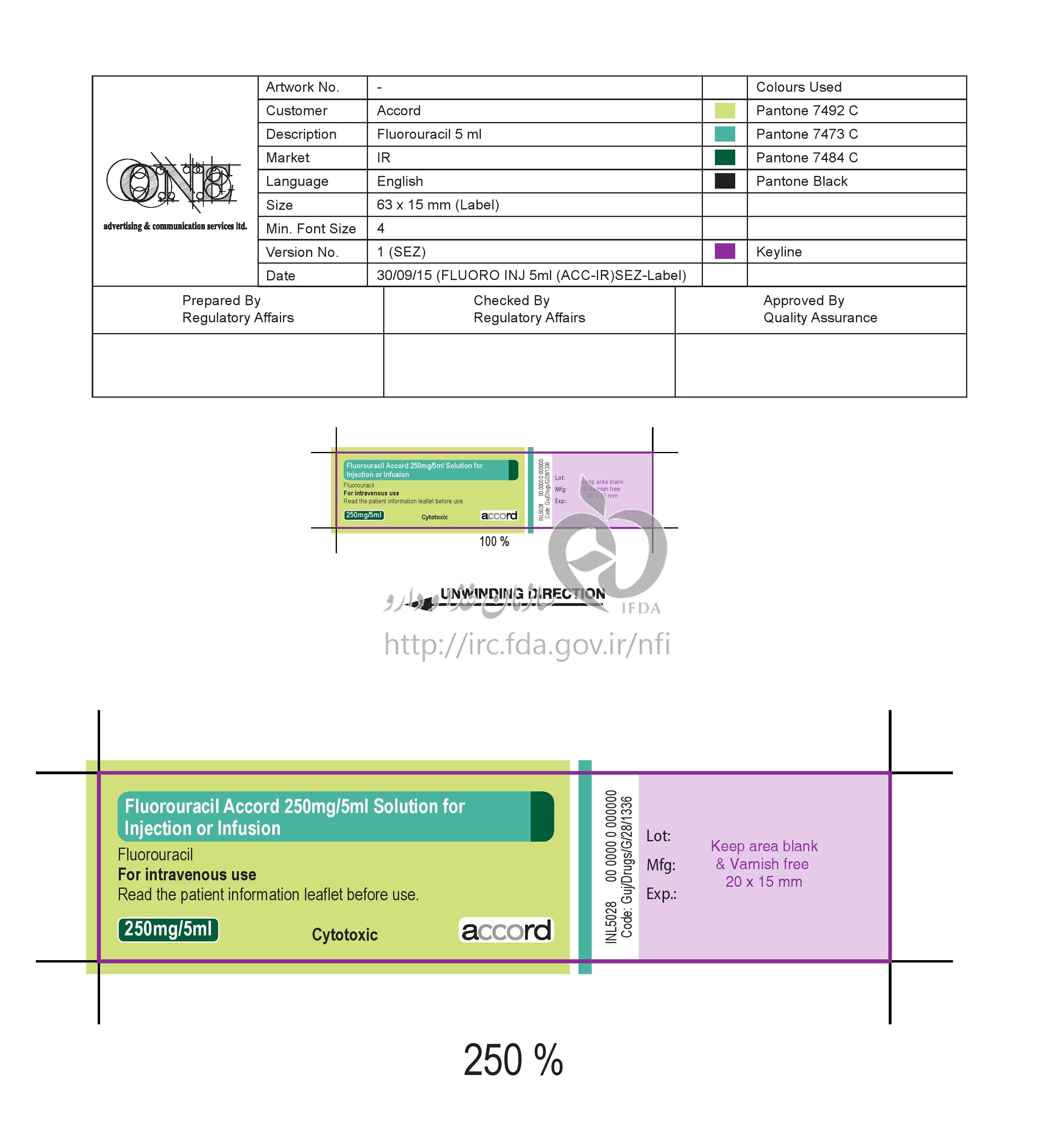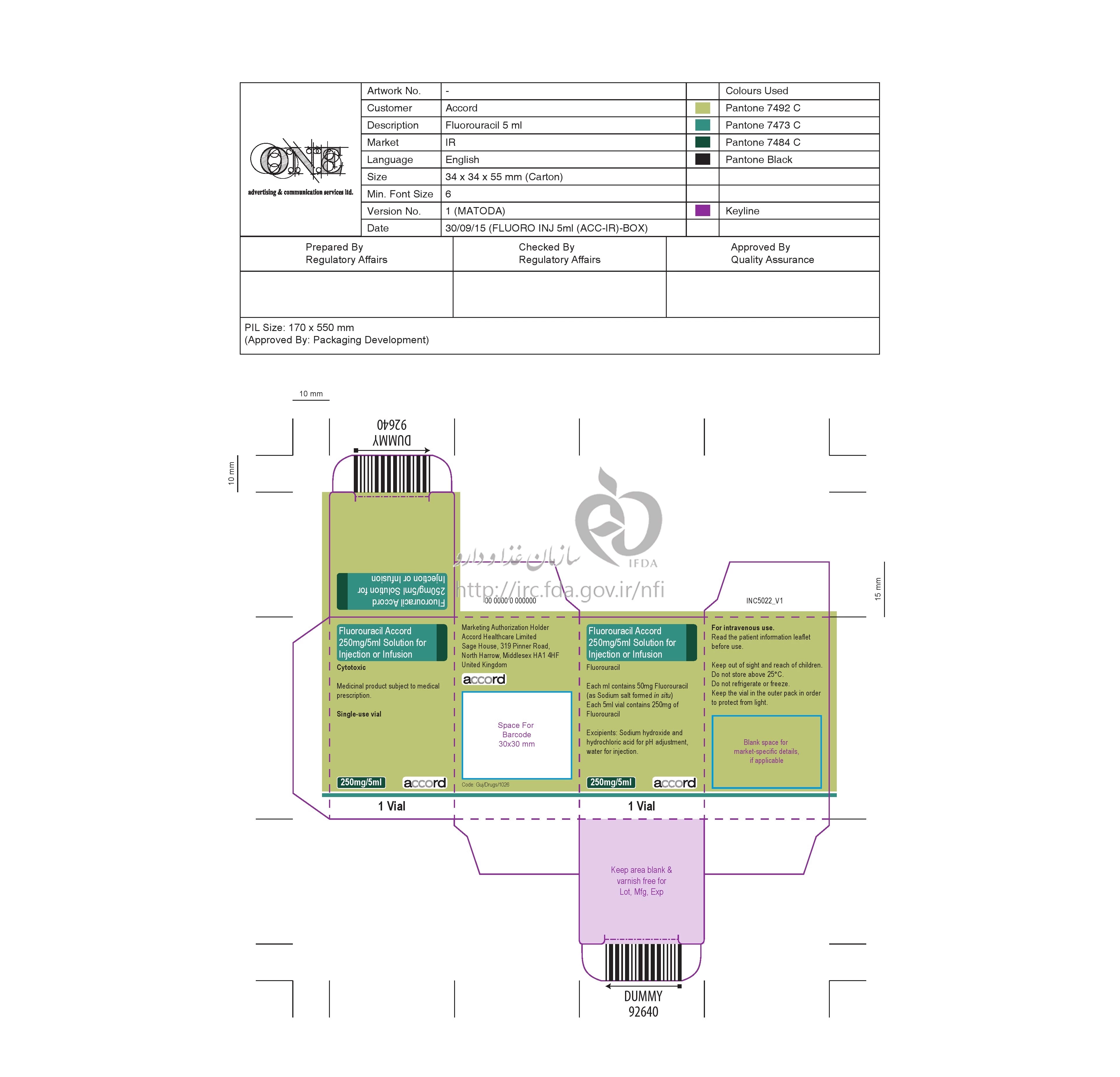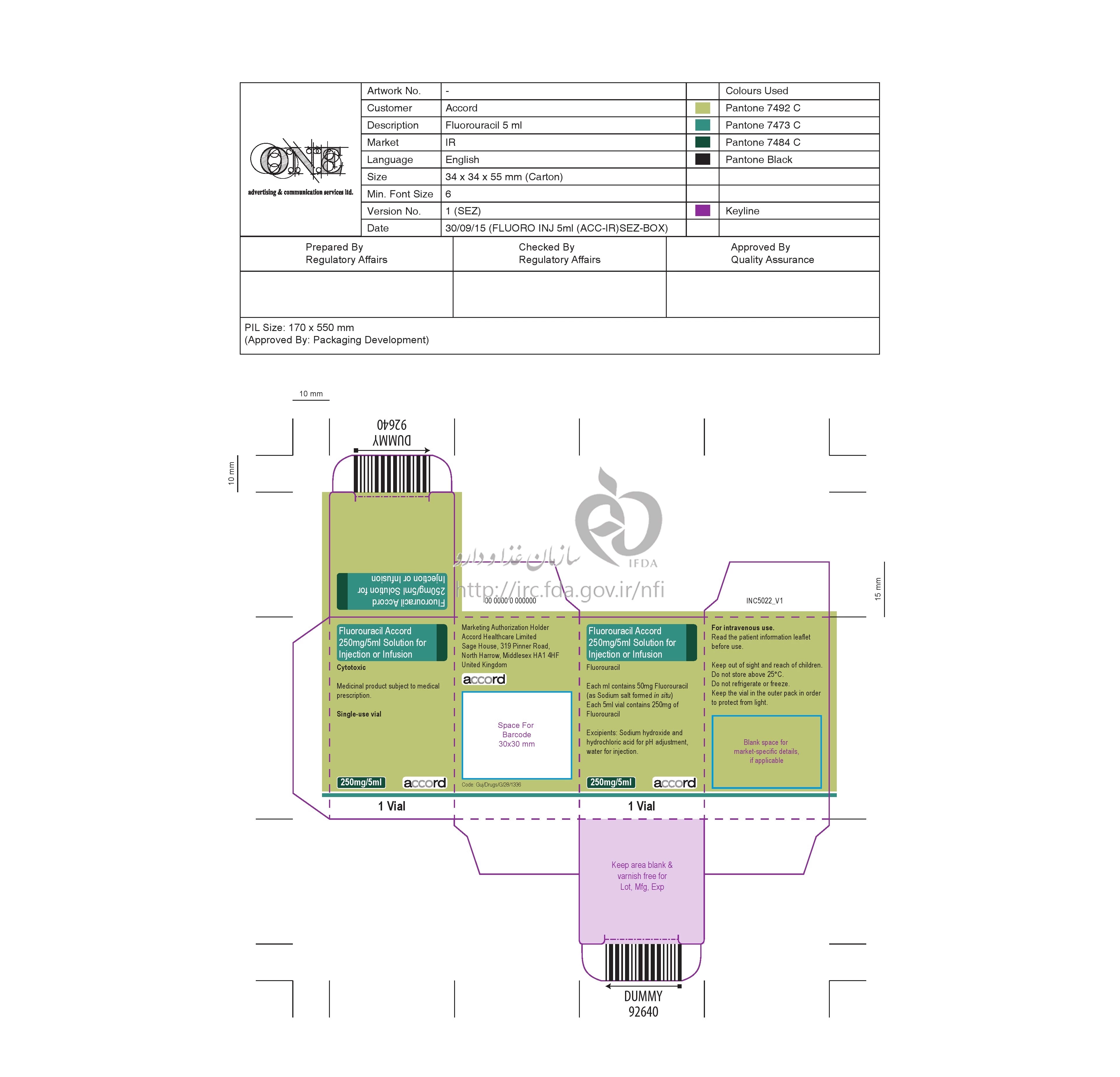 دکترها فلورواوراسیل آکورد تزریقی پرنترال 50 mg/1mL 5MILLILITER