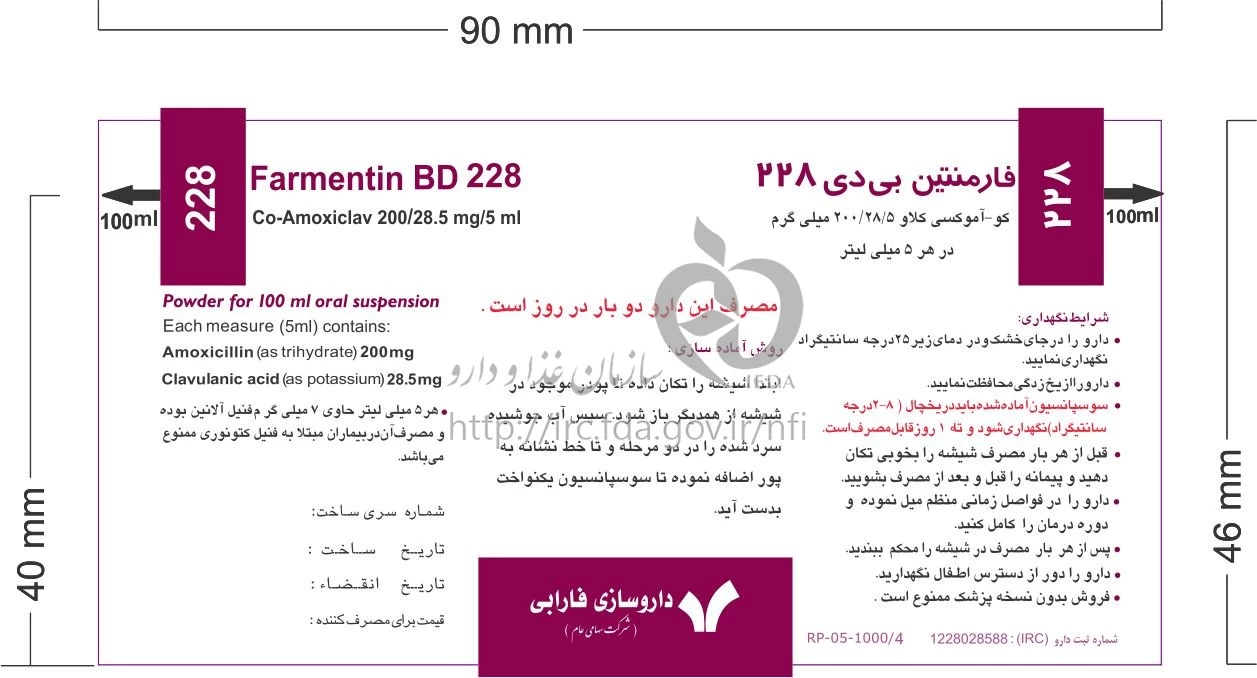 فارمنتین بی دی پودر برای تهیه سوسپانسیون خوراکی 400 mg/57 mg/5 mL 100MILLILITER