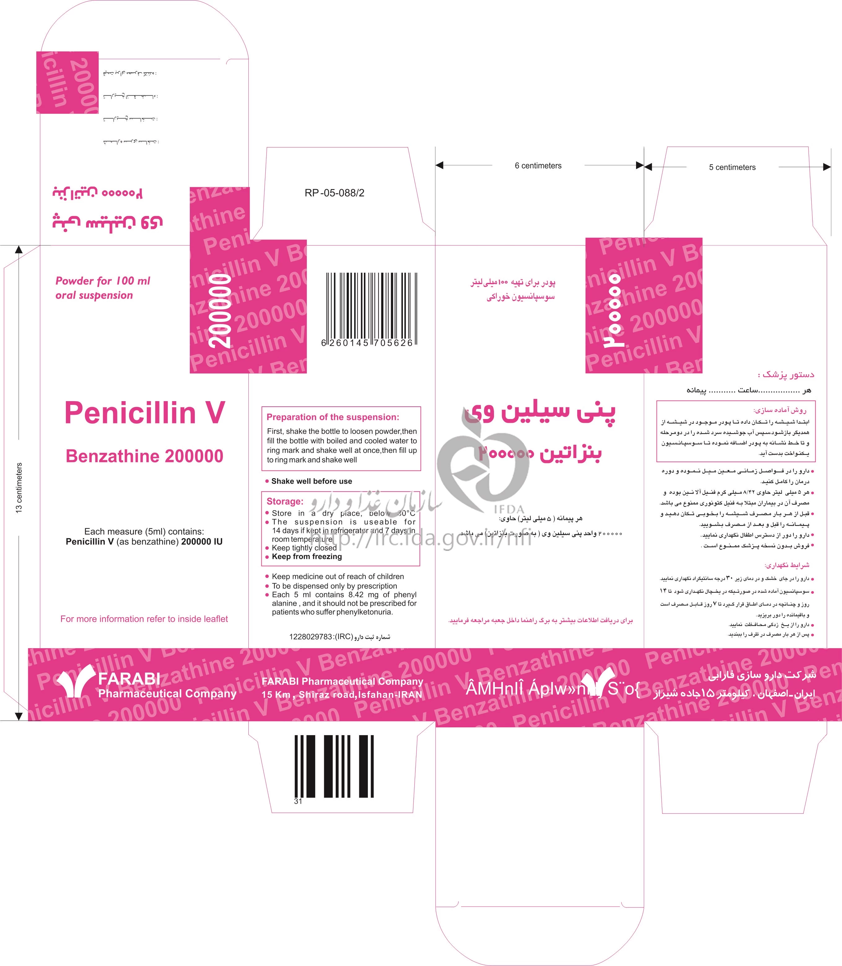 دکترها پنی سیلین وی بنزاتین پودر برای تهیه سوسپانسیون خوراکی 200000 [iU]/5mL 100MILLILITER