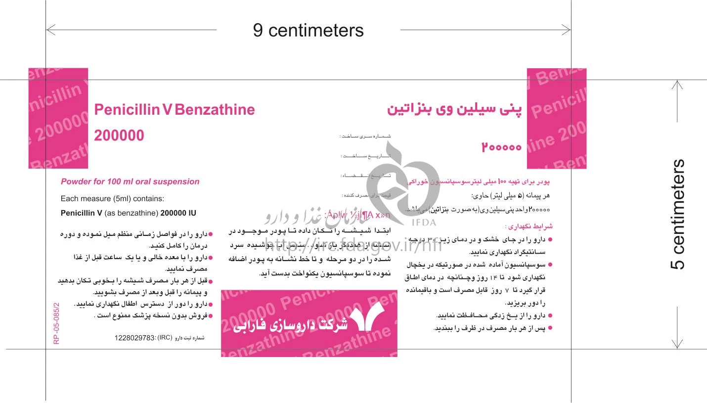 پنی سیلین وی بنزاتین پودر برای تهیه سوسپانسیون خوراکی 200000 [iU]/5mL 100MILLILITER