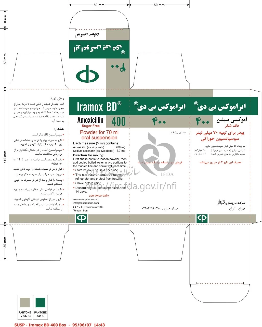 ایراموکس بی دی پودر برای تهیه سوسپانسیون خوراکی 400 mg/5 mL 70MILLILITER