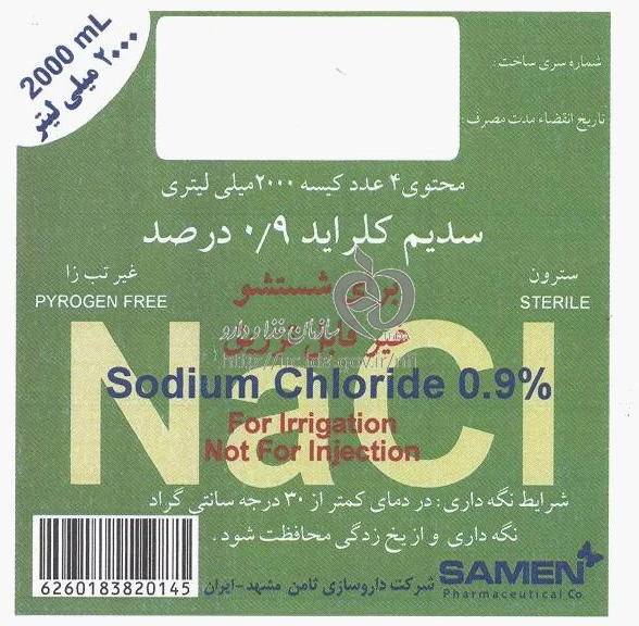 سدیم کلراید محلول جهت شستشو 0.9 % 2LITER
