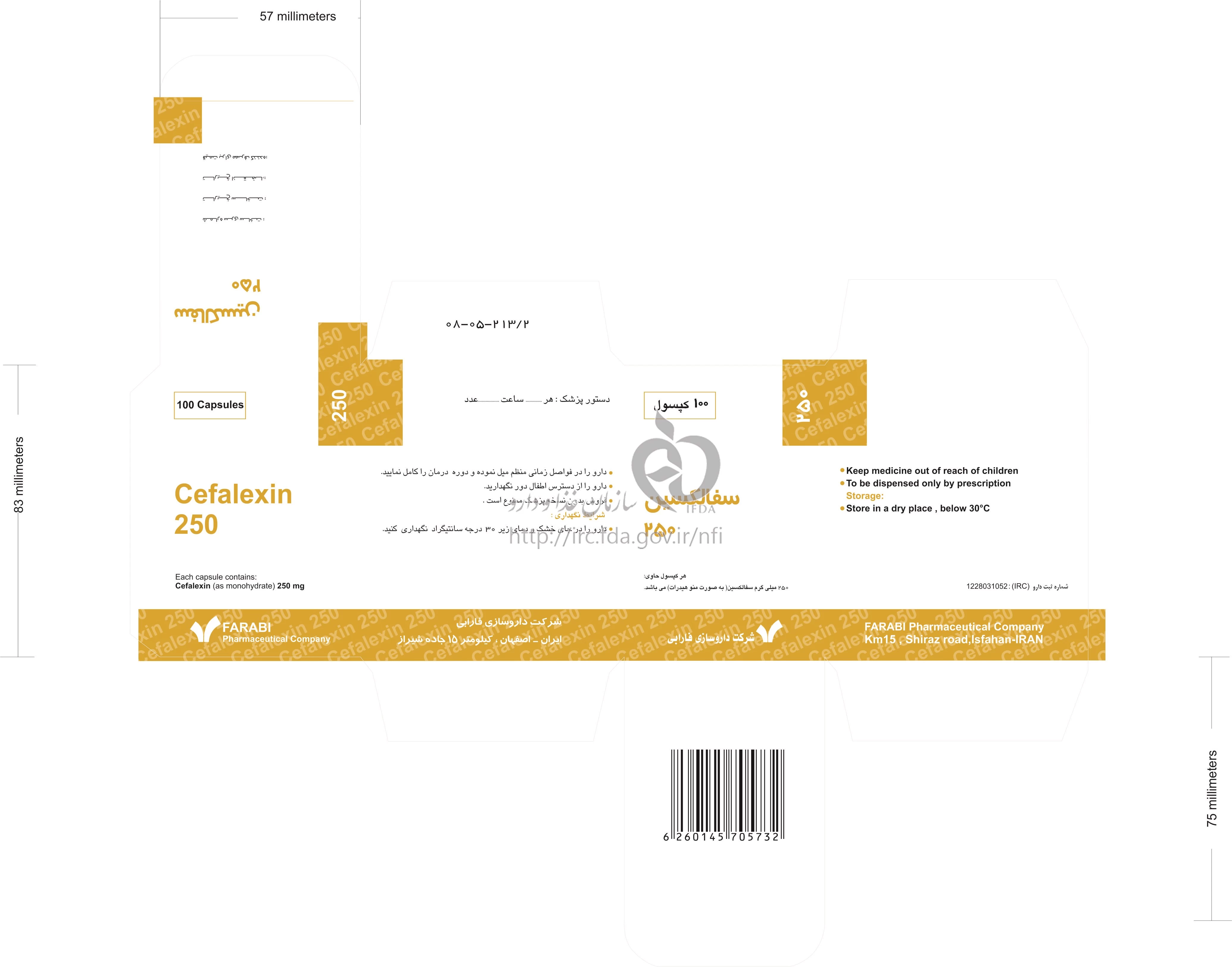 سفالکسین کپسول خوراکی 250 mg