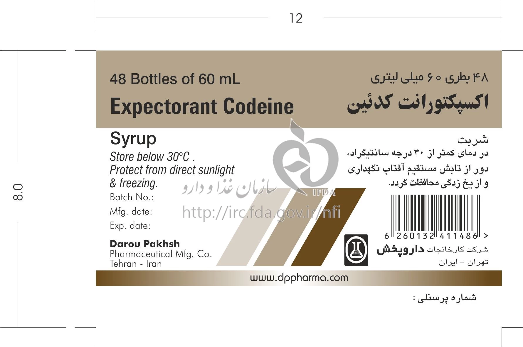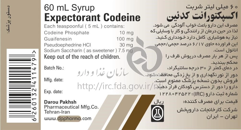 اکسپکتورانت کدئین شربت خوراکی 100 mg/30 mg/10 mg/5 mL 60MILLILITER