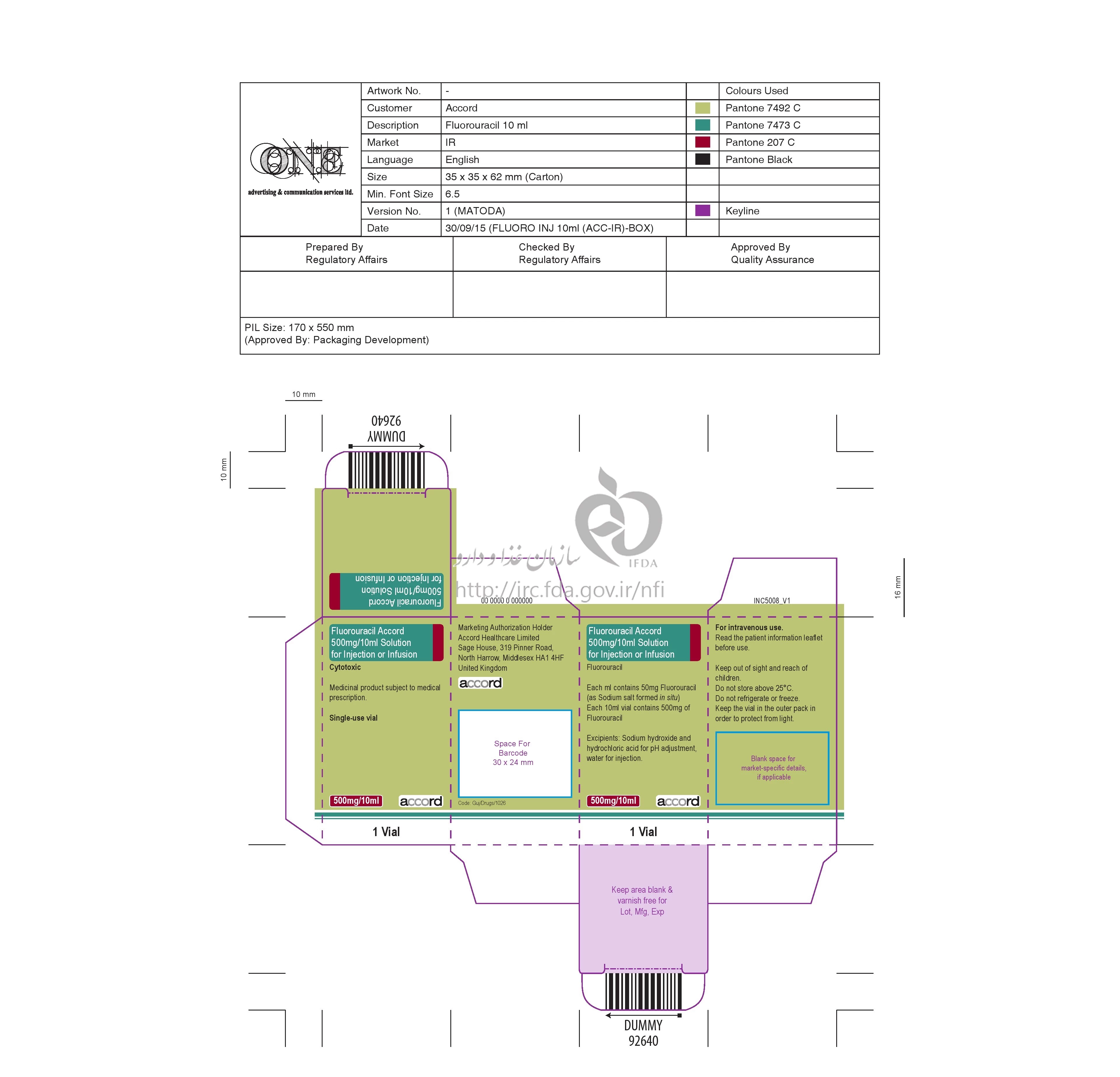 فلورواوراسیل آکورد تزریقی پرنترال 50 mg/1mL 10MILLILITER