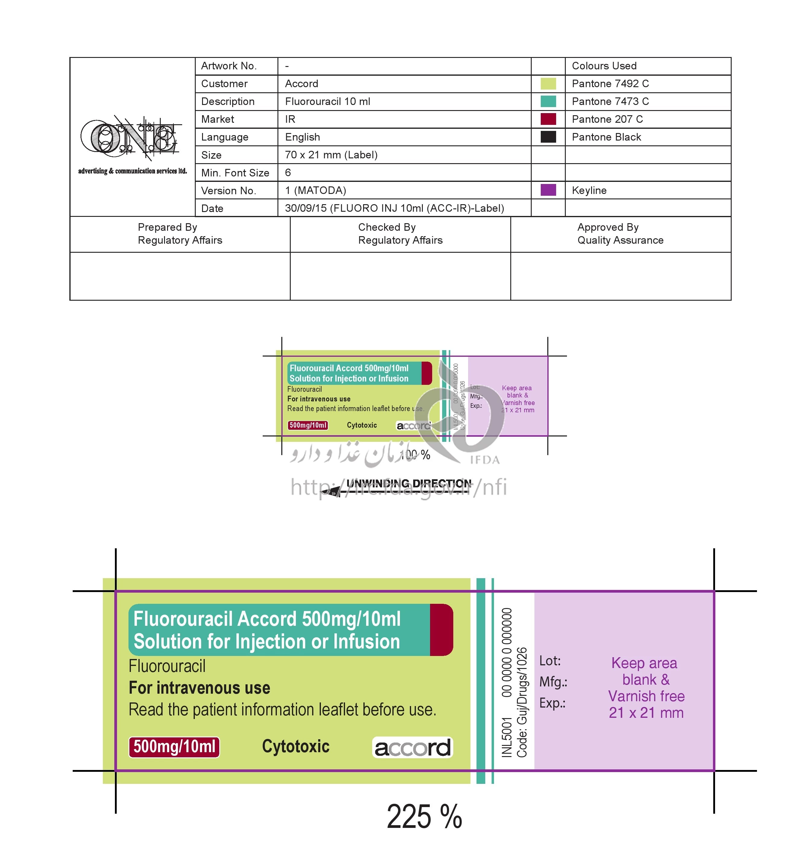 موارد مصرف فلورواوراسیل آکورد تزریقی پرنترال 50 mg/1mL 10MILLILITER
