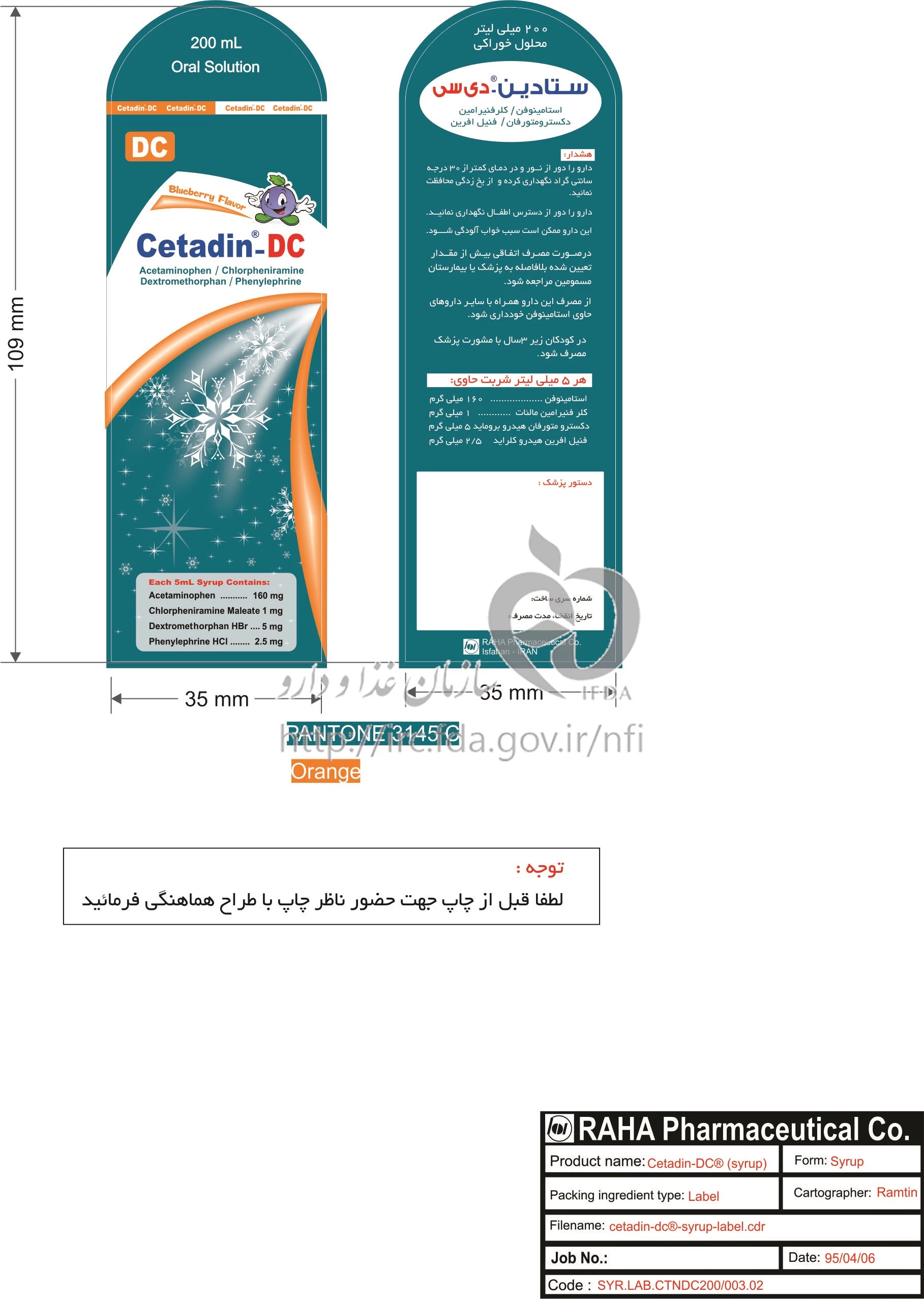 ستادین دی - سی شربت خوراکی 160 mg/1 mg/5 mg/2.5 mg/5mL 200MILLILITER