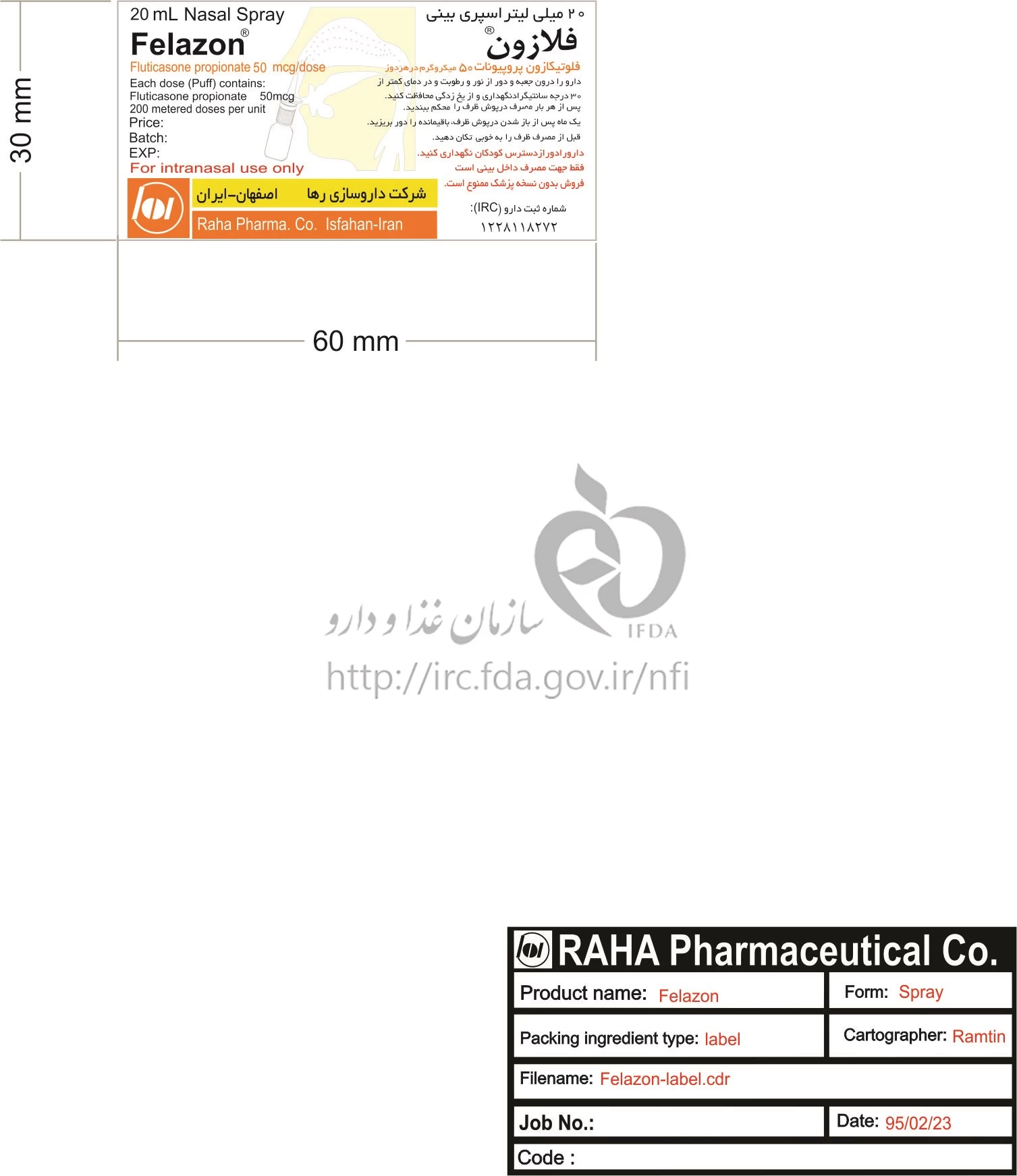 فلازون اسپری اسپری از راه بینی 50 ug/1{Puff} 20MILLILITER