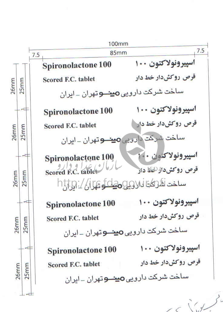 اسپیرونولاکتون قرص خوراکی 100 mg