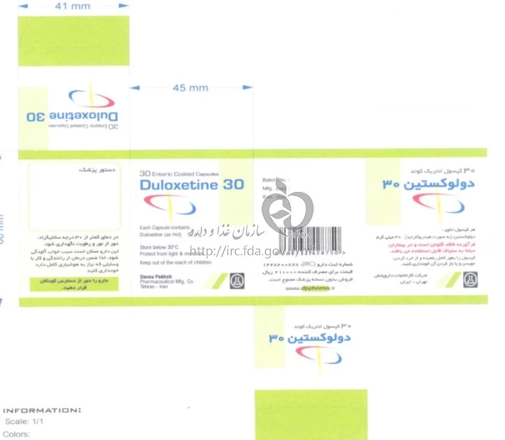 دلوکستین کپسول انتریک کوتد خوراکی 30 mg