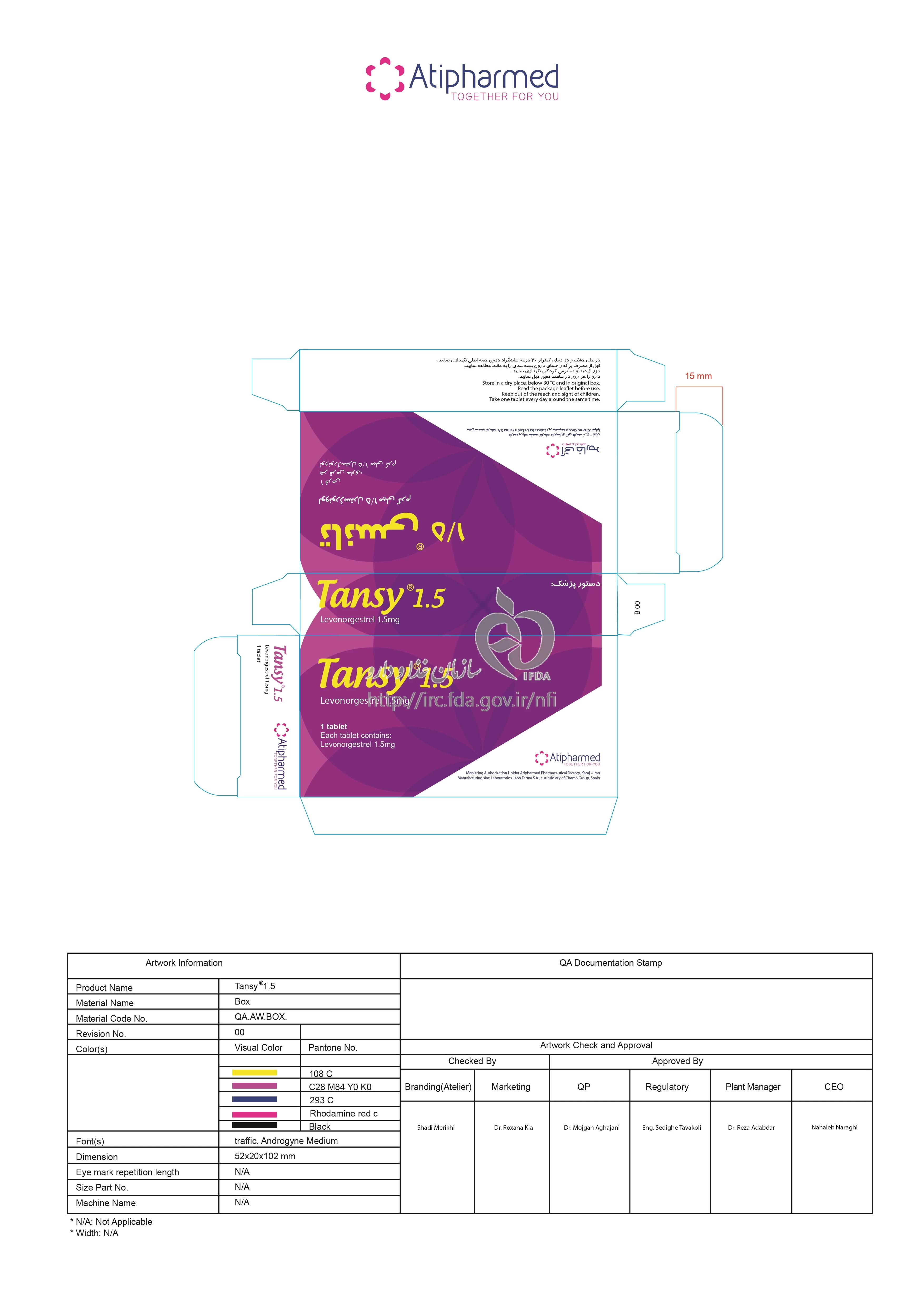 تَنسی قرص خوراکی 1.5 mg