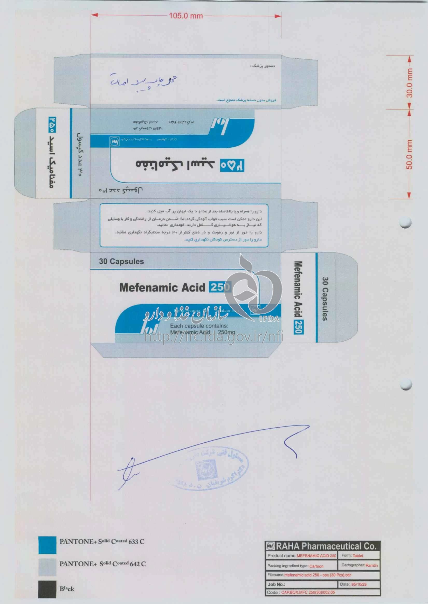 نکات قابل توصیه مفنامیک اسید کپسول خوراکی 250 mg