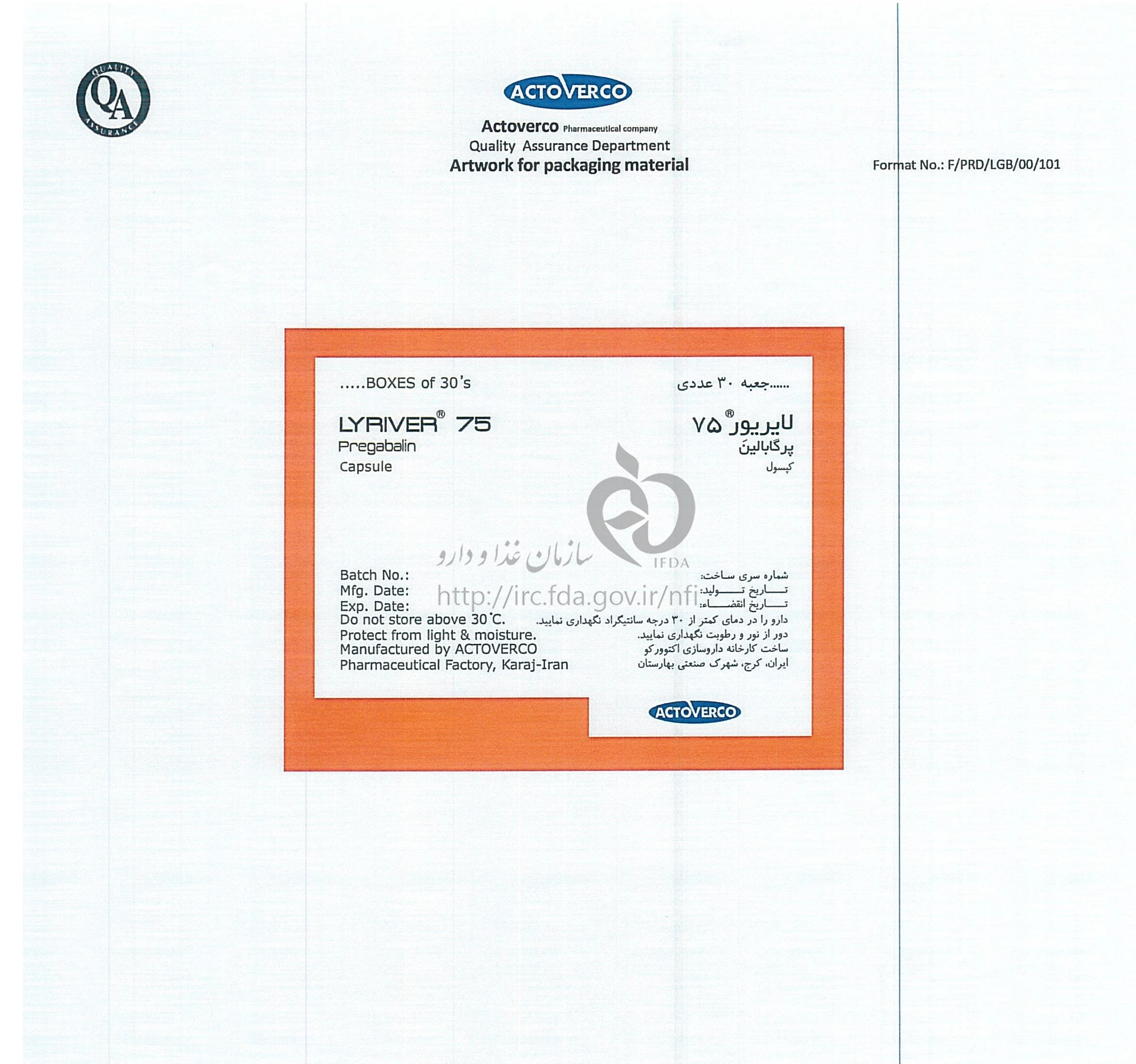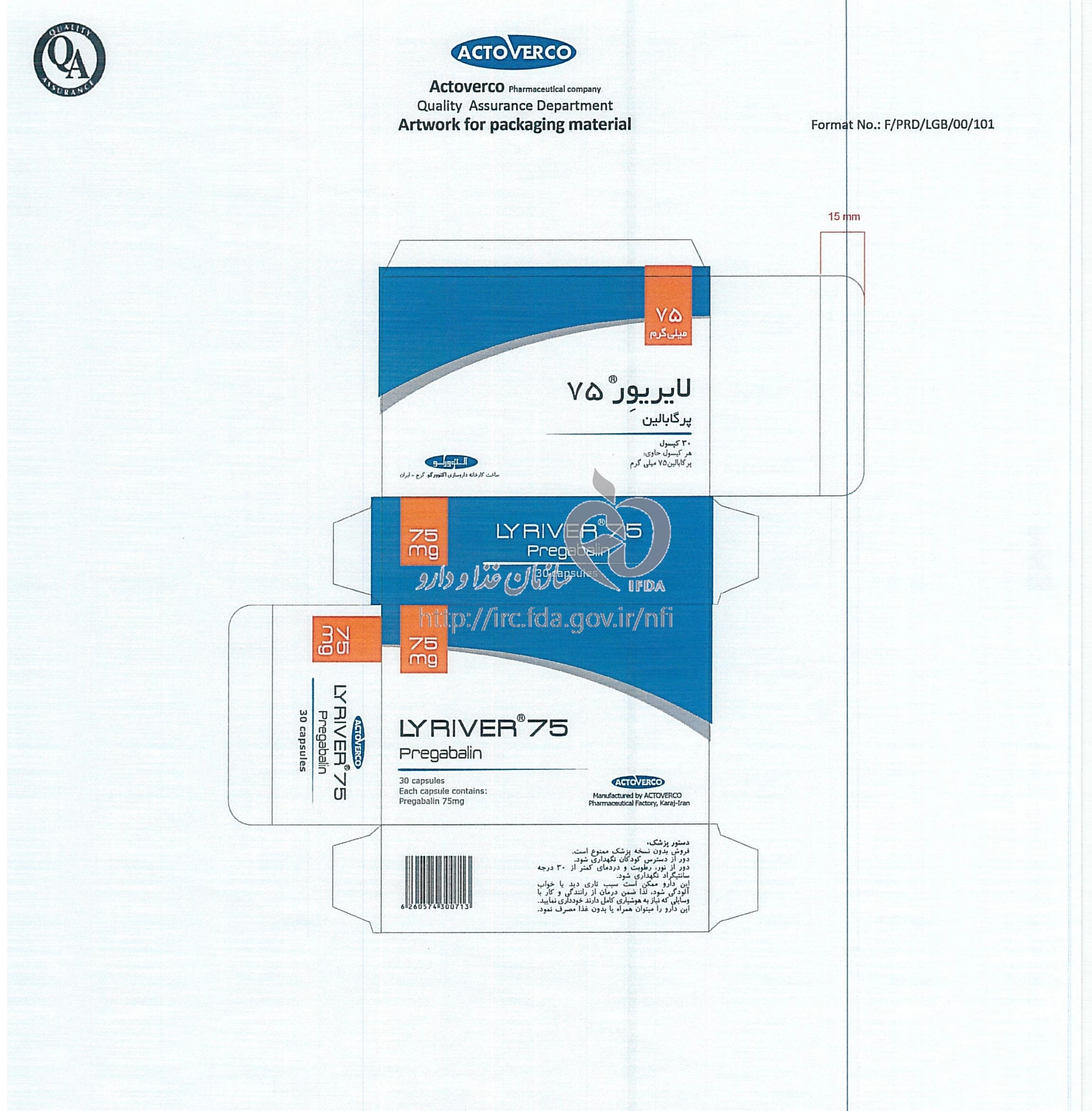 لایریور کپسول خوراکی 75 mg