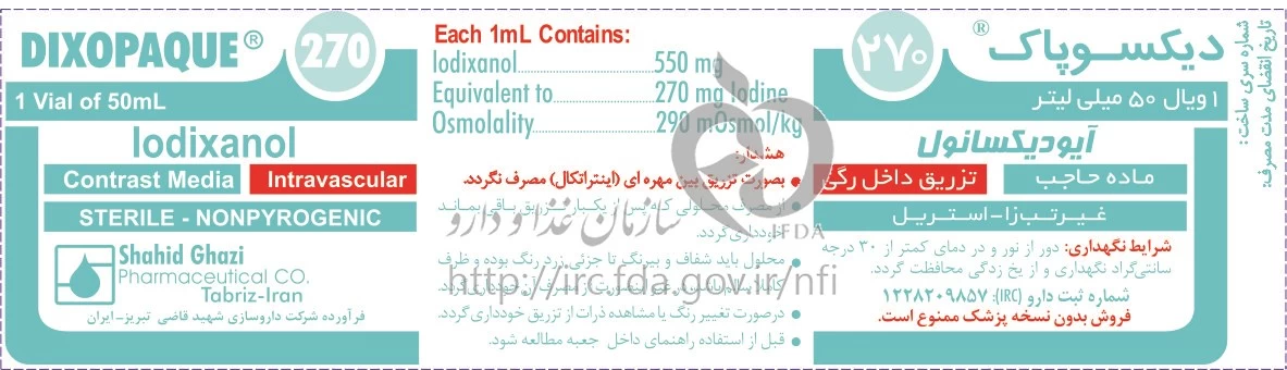 دکترها دیکسوپاک تزریقی پرنترال 270 mg/1mL 50MILLILITER