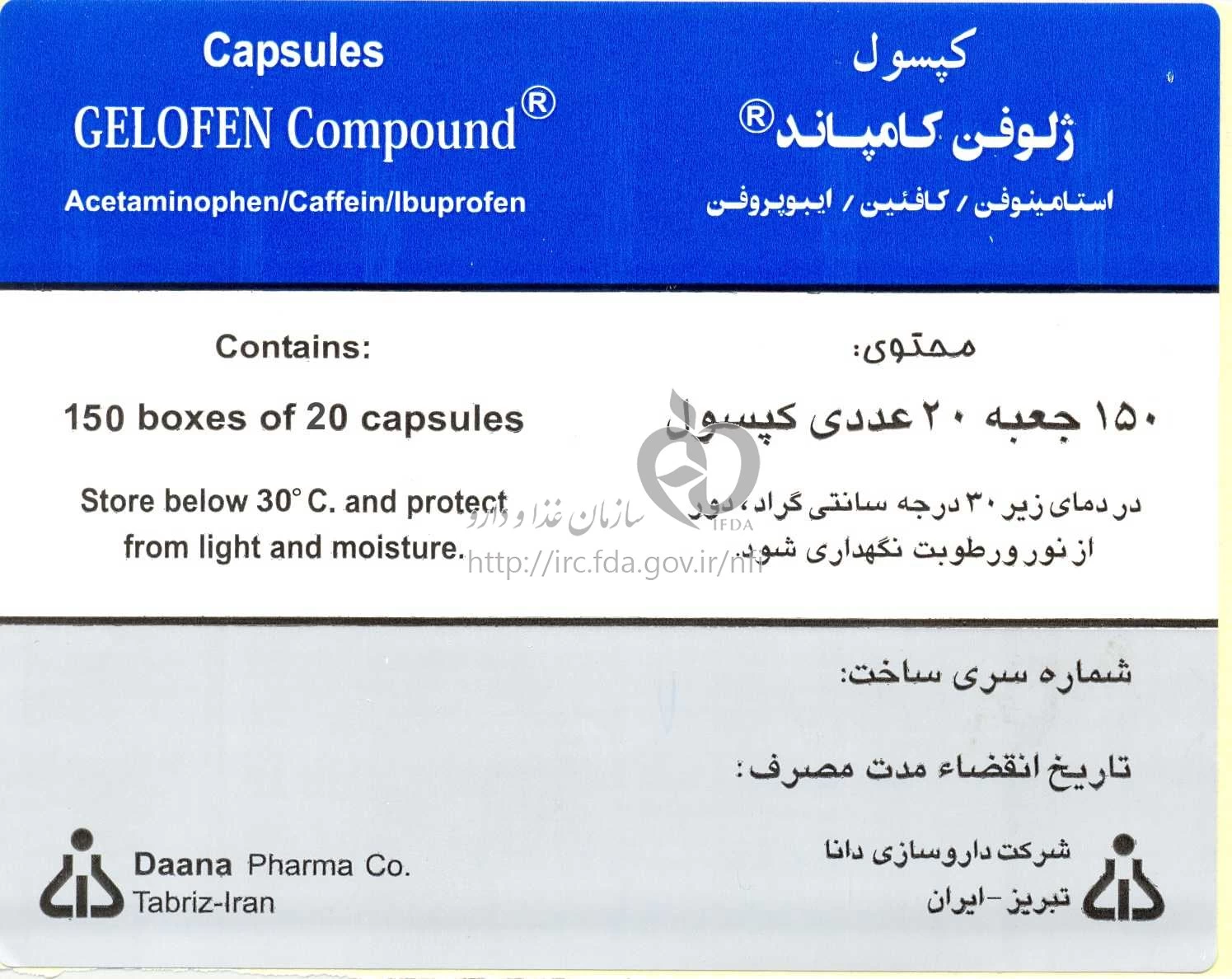موارد مصرف ، عوارض جانبی ، مصرف بارداری و تداخلات دارویی ژلوفن کامپاند کپسول با روکش ژلاتین خوراکی 325 mg/40 mg/200 mg