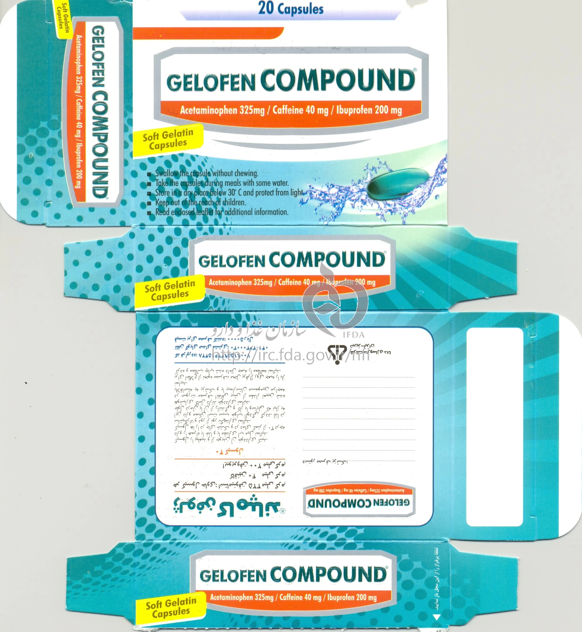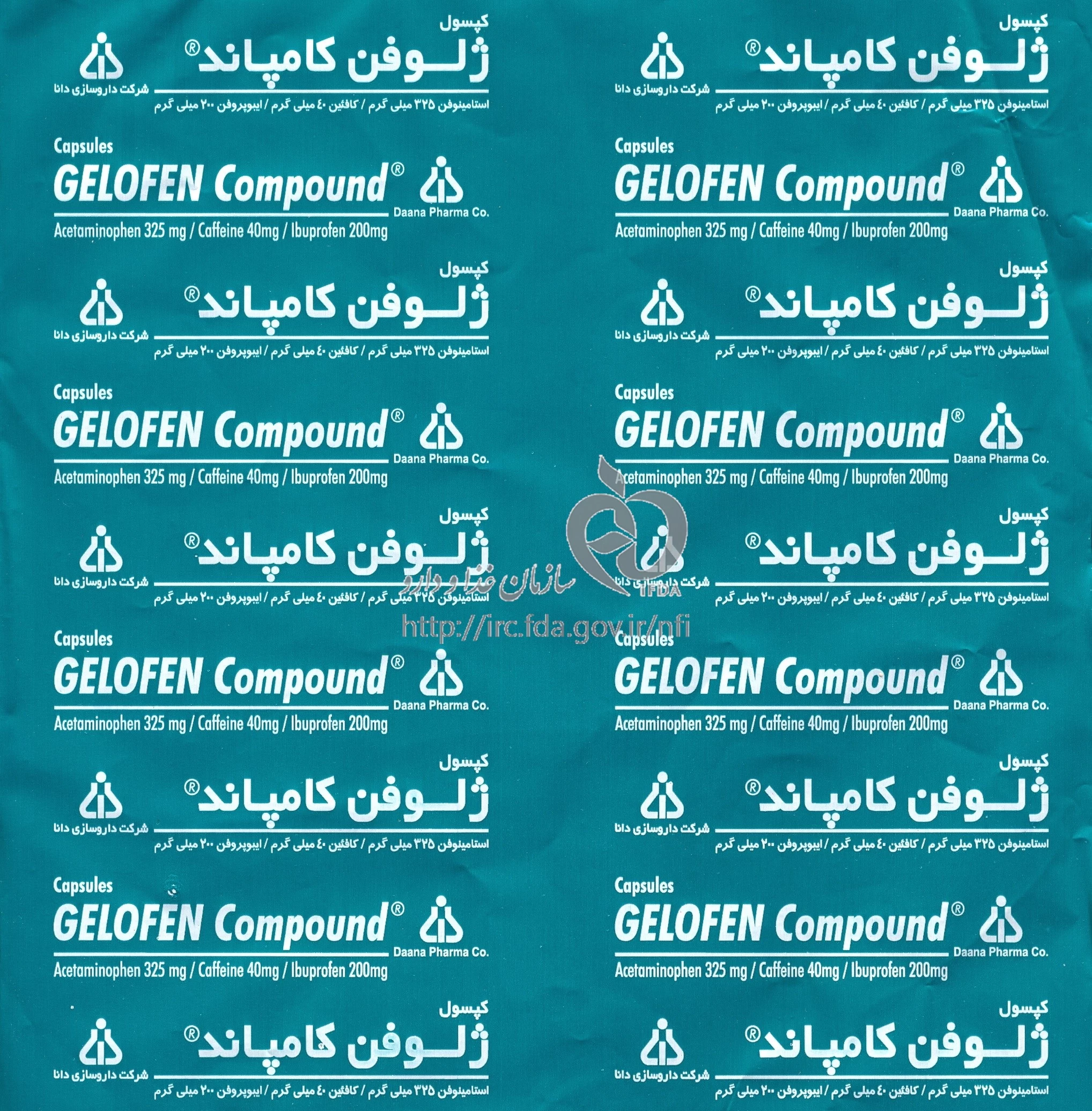ژلوفن کامپاند کپسول با روکش ژلاتین خوراکی 325 mg/40 mg/200 mg