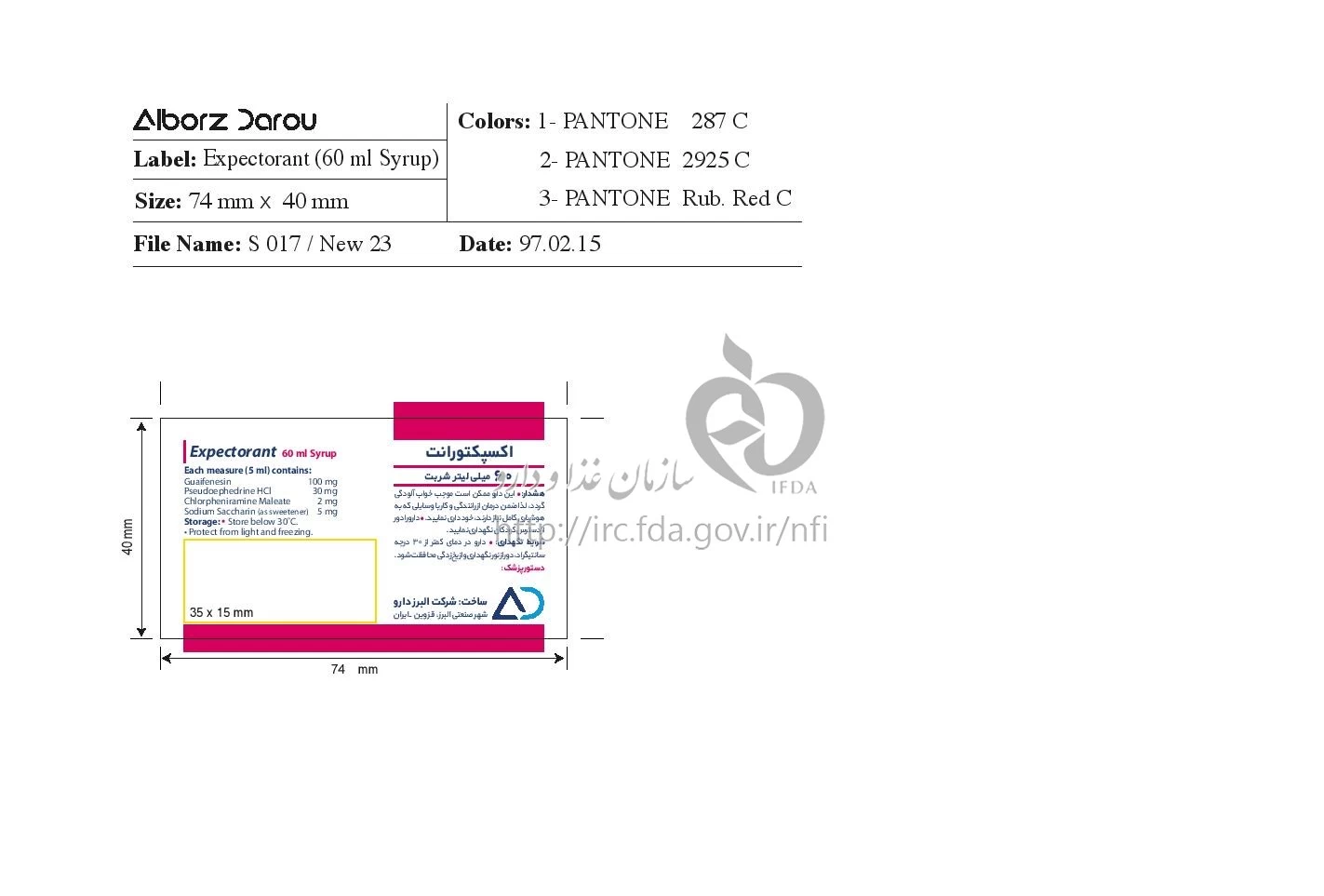 اکسپکتورانت شربت خوراکی 100 mg/2 mg/30 mg/5mL 60MILLILITER