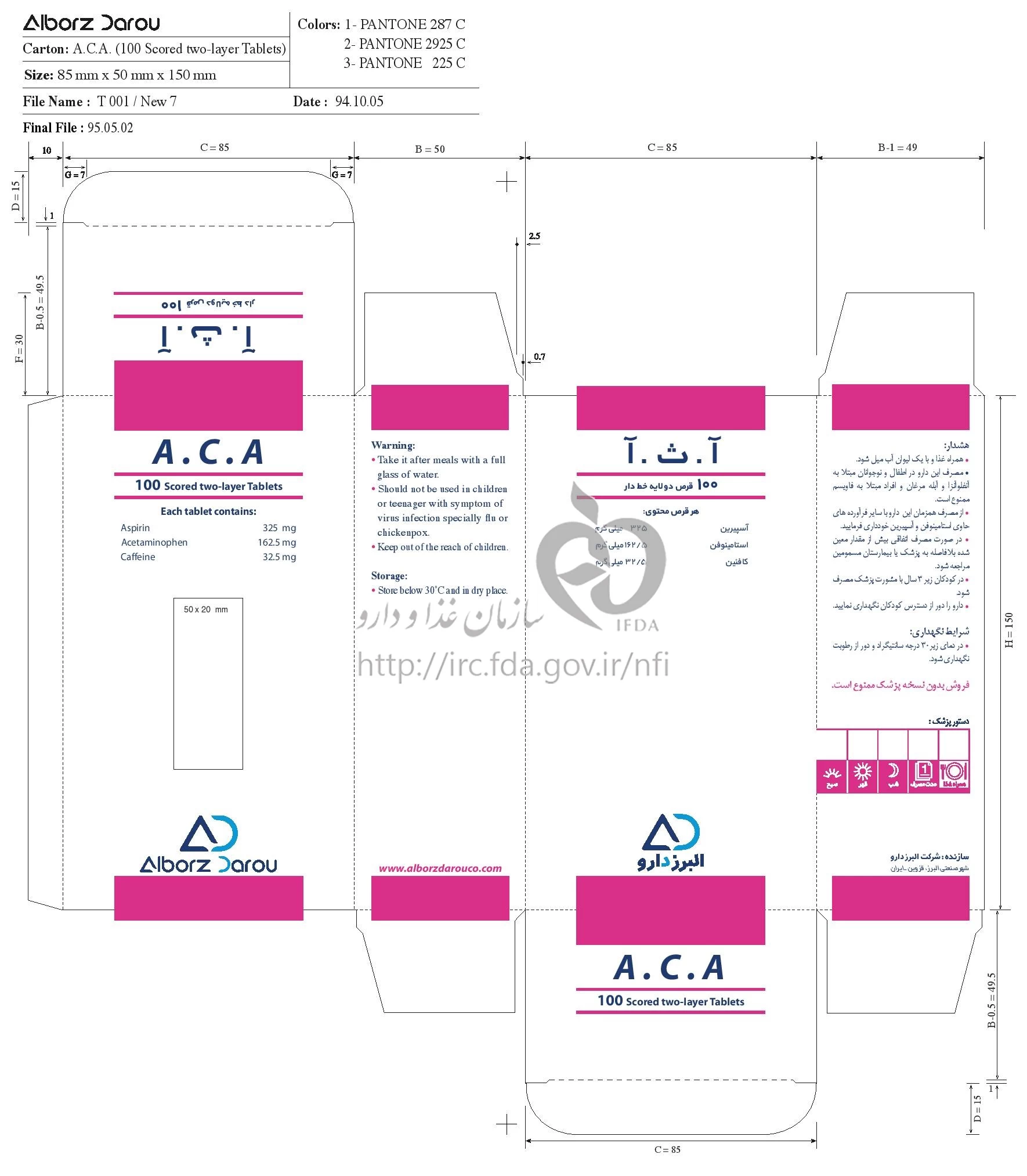 دکترها آ ث آ قرص خوراکی 162.5 mg/32.5 mg/325 mg
