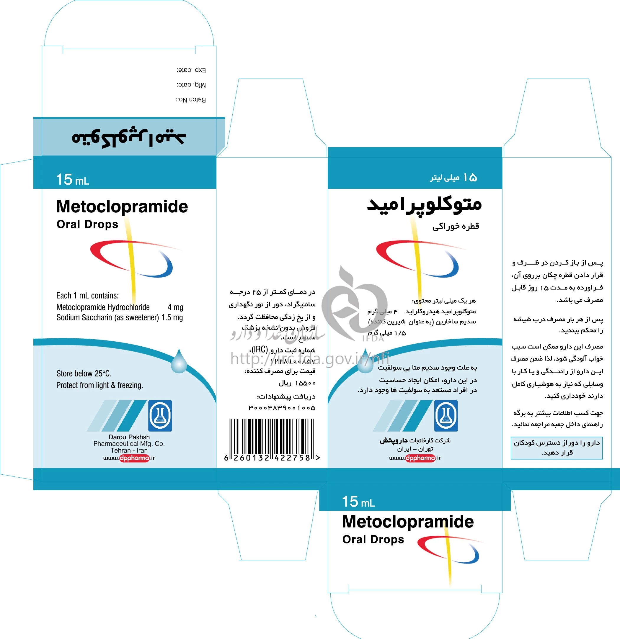 متوکلوپرامید محلول ، قطره خوراکی 4 mg/1mL 15MILLILITER