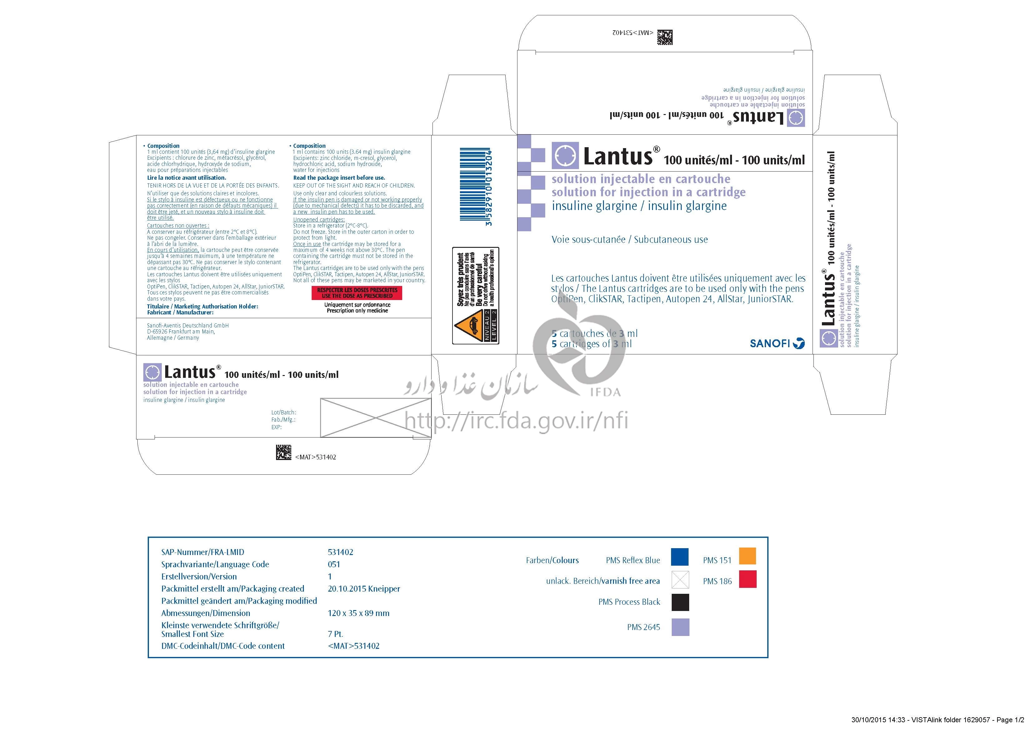 دکترها لانتوس تزریقی پرنترال 100 [iU]/1mL 3MILLILITER