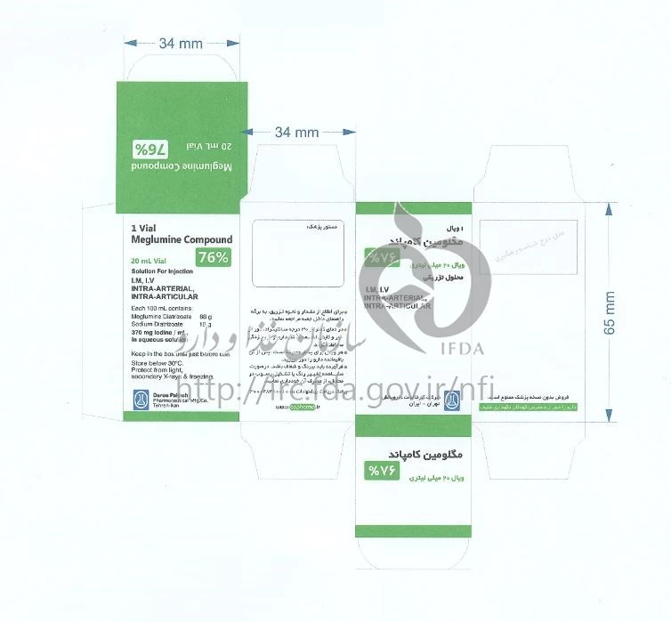 موارد مصرف مگلومین کامپاند تزریقی پرنترال 66 %/10 % 20MILLILITER