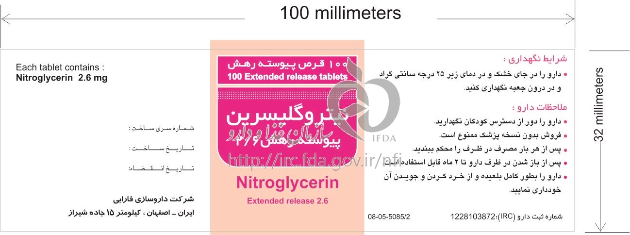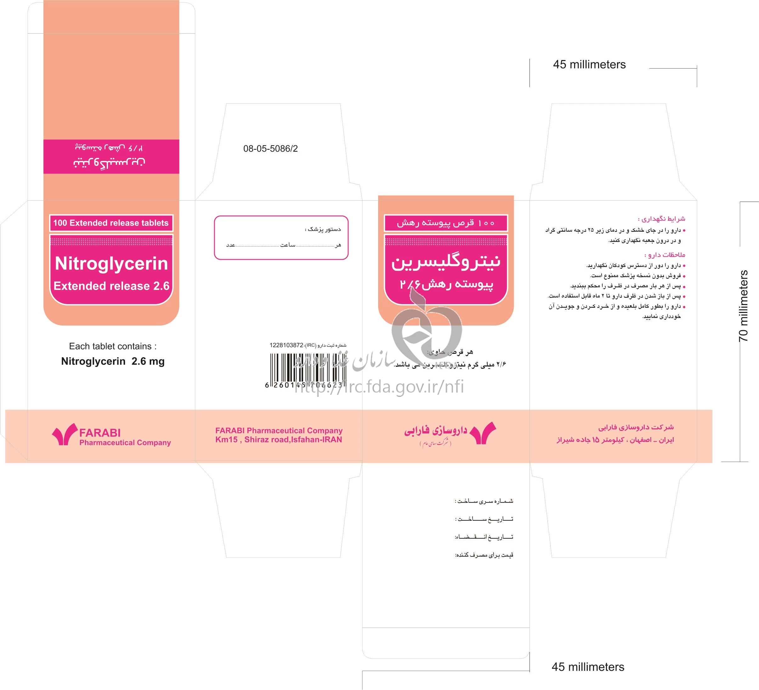 نیتروگلیسرین قرص پیوسته رهش خوراکی 2.6 mg