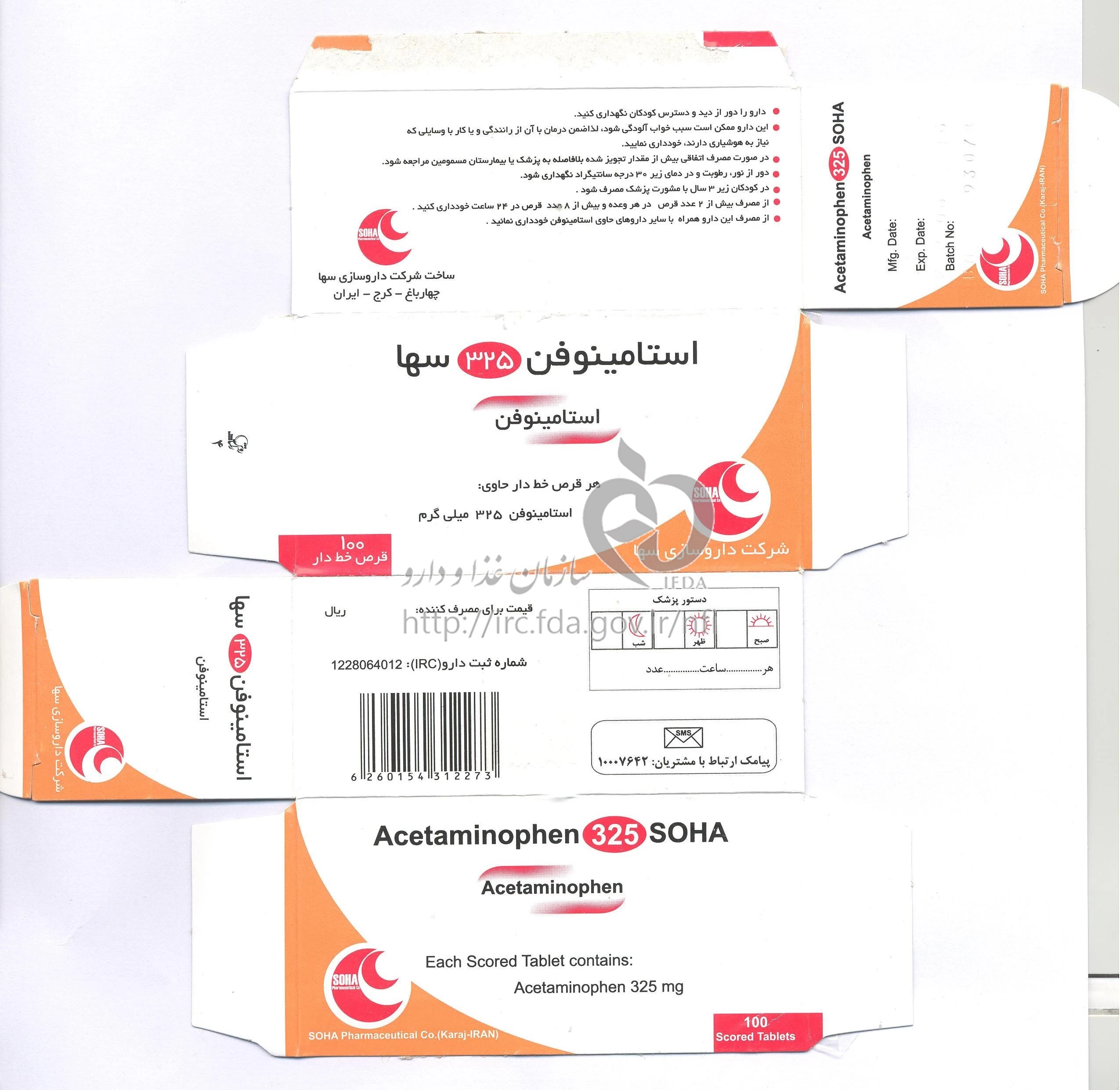 استامینوفن سها قرص خوراکی 325 mg