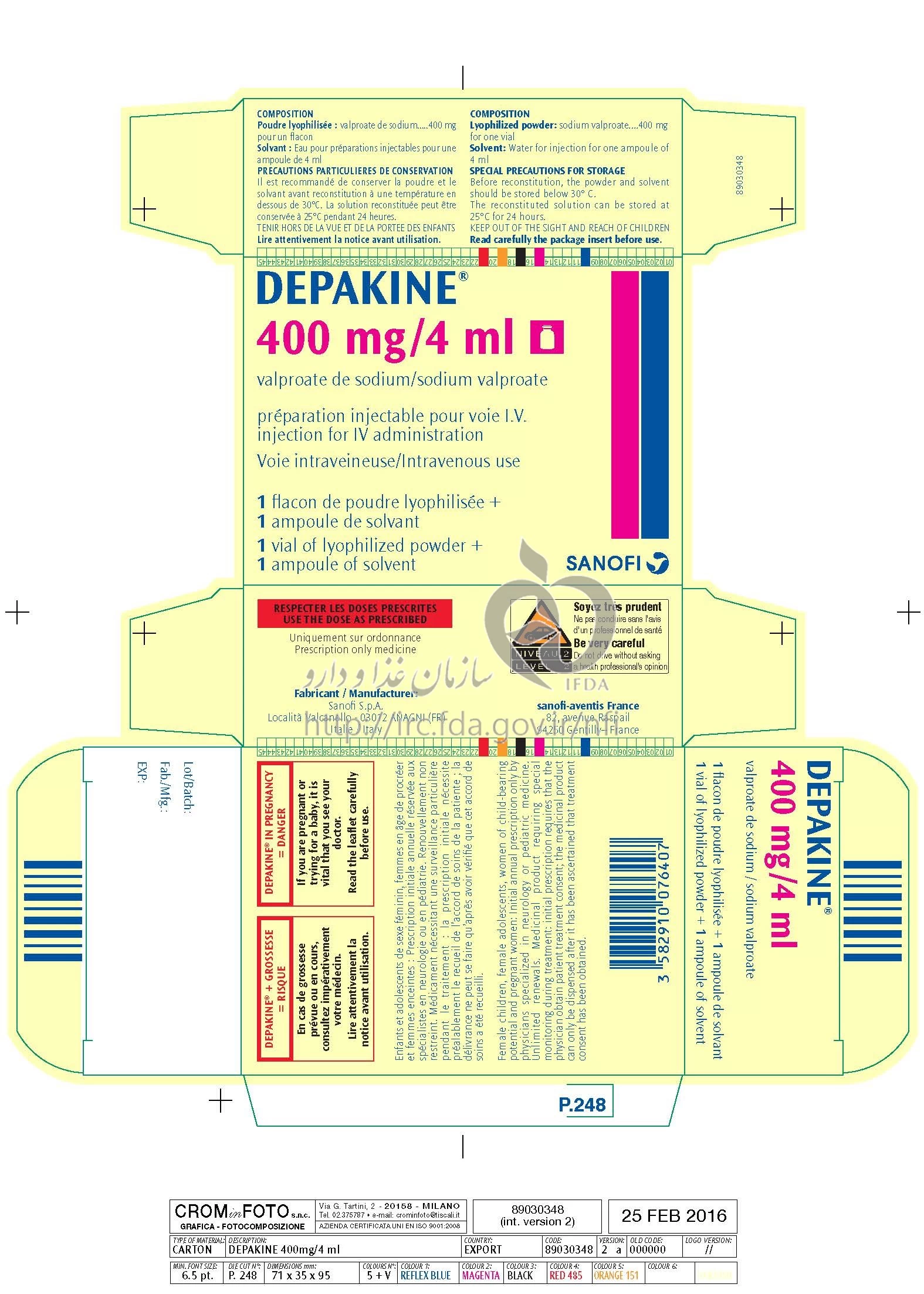دپاکین پودر برای تهیه محلول تزریقی پرنترال 400 mg