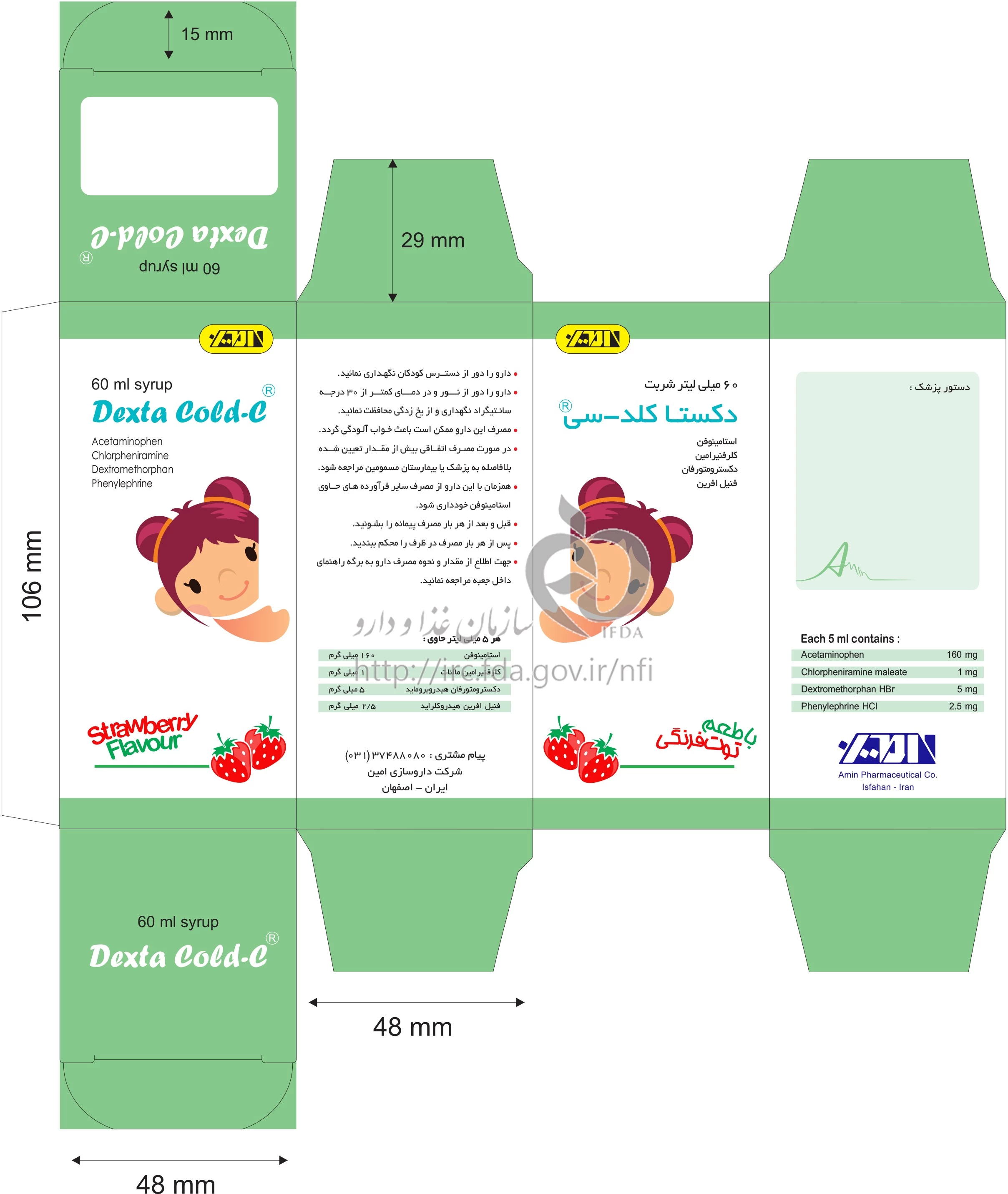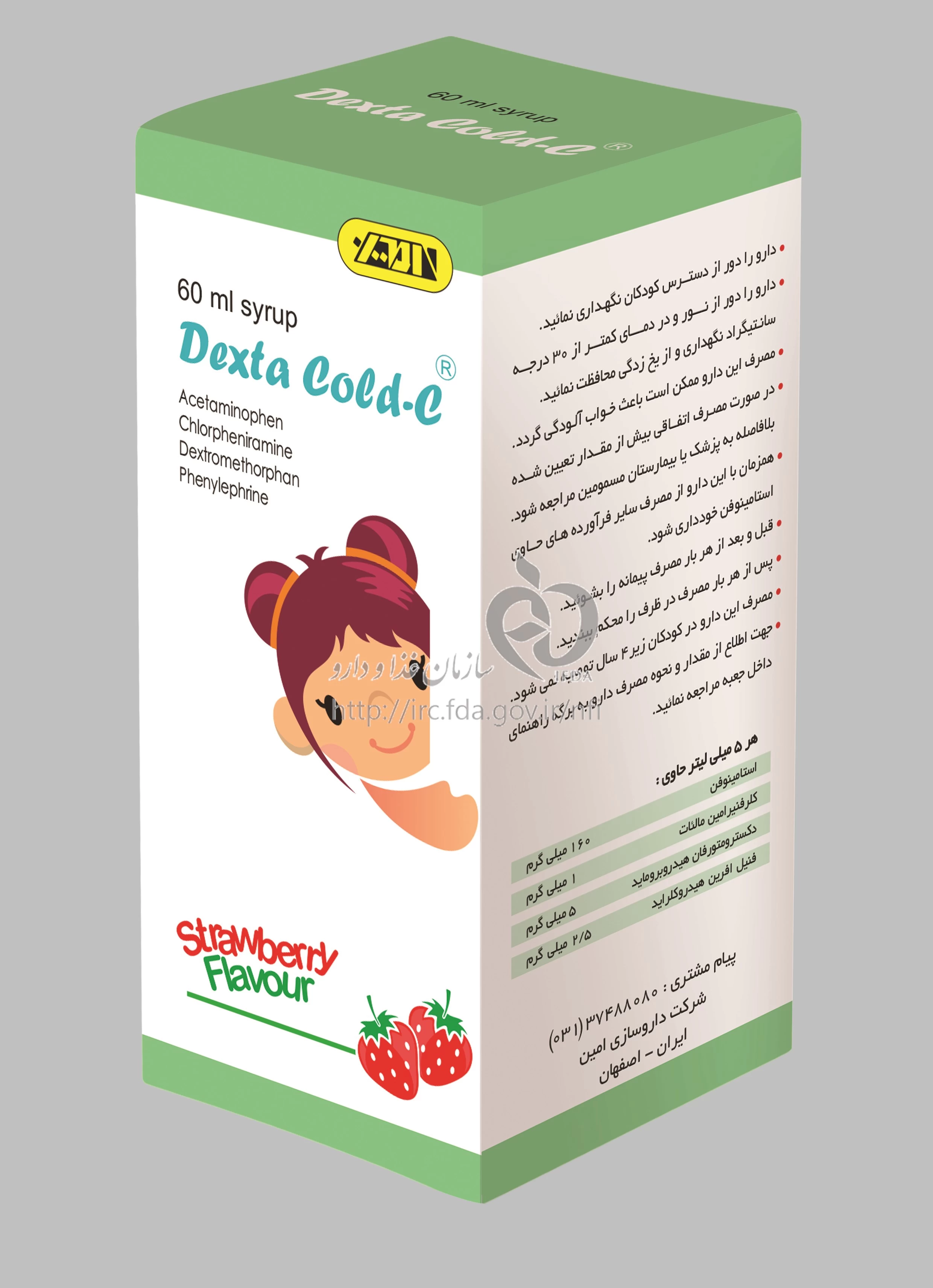 دکستا کلد سی شربت خوراکی 160 mg/1 mg/5 mg/2.5 mg/5mL 60MILLILITER