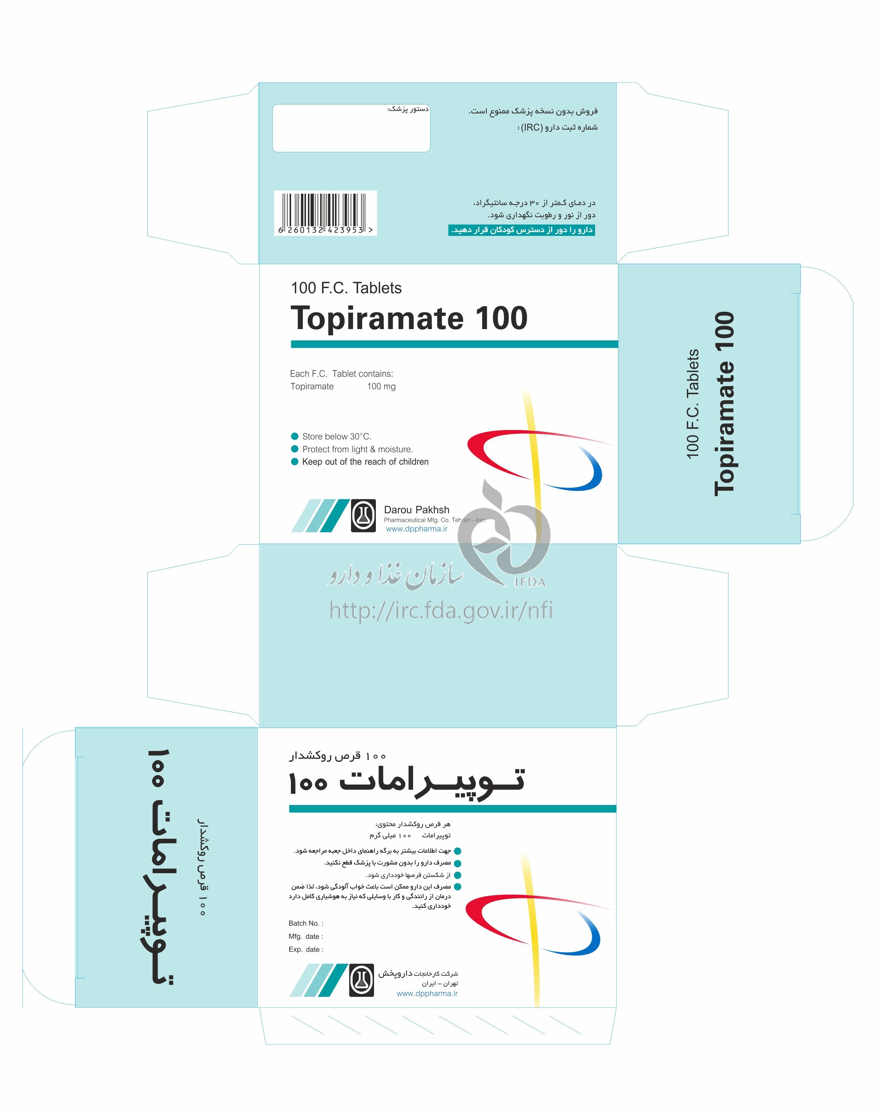 توپیرامات قرص خوراکی 100 mg