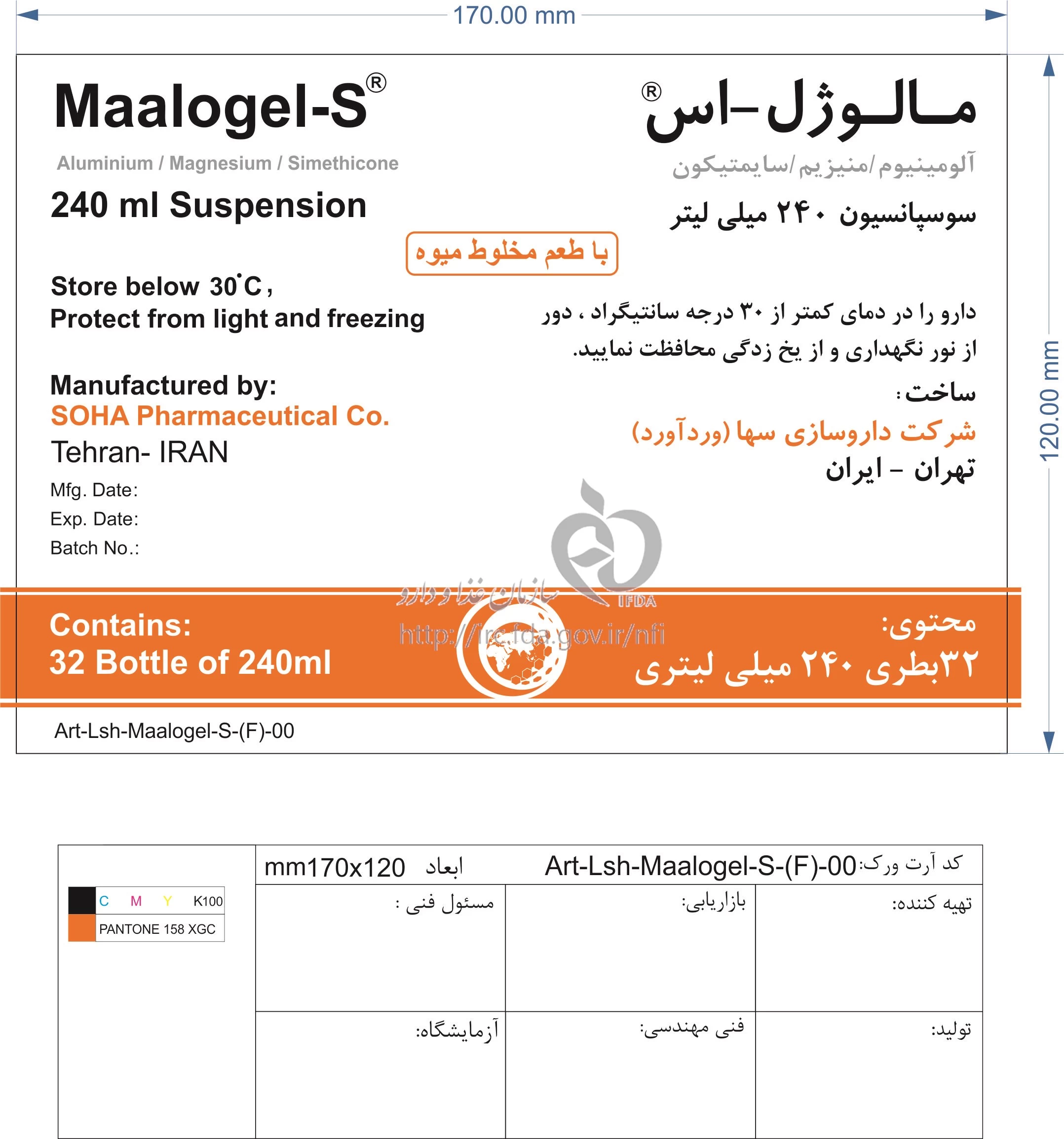 مالوژل - اس سوسپانسیون خوراکی 225 mg/200 mg/25 mg/5mL 240MILLILITER