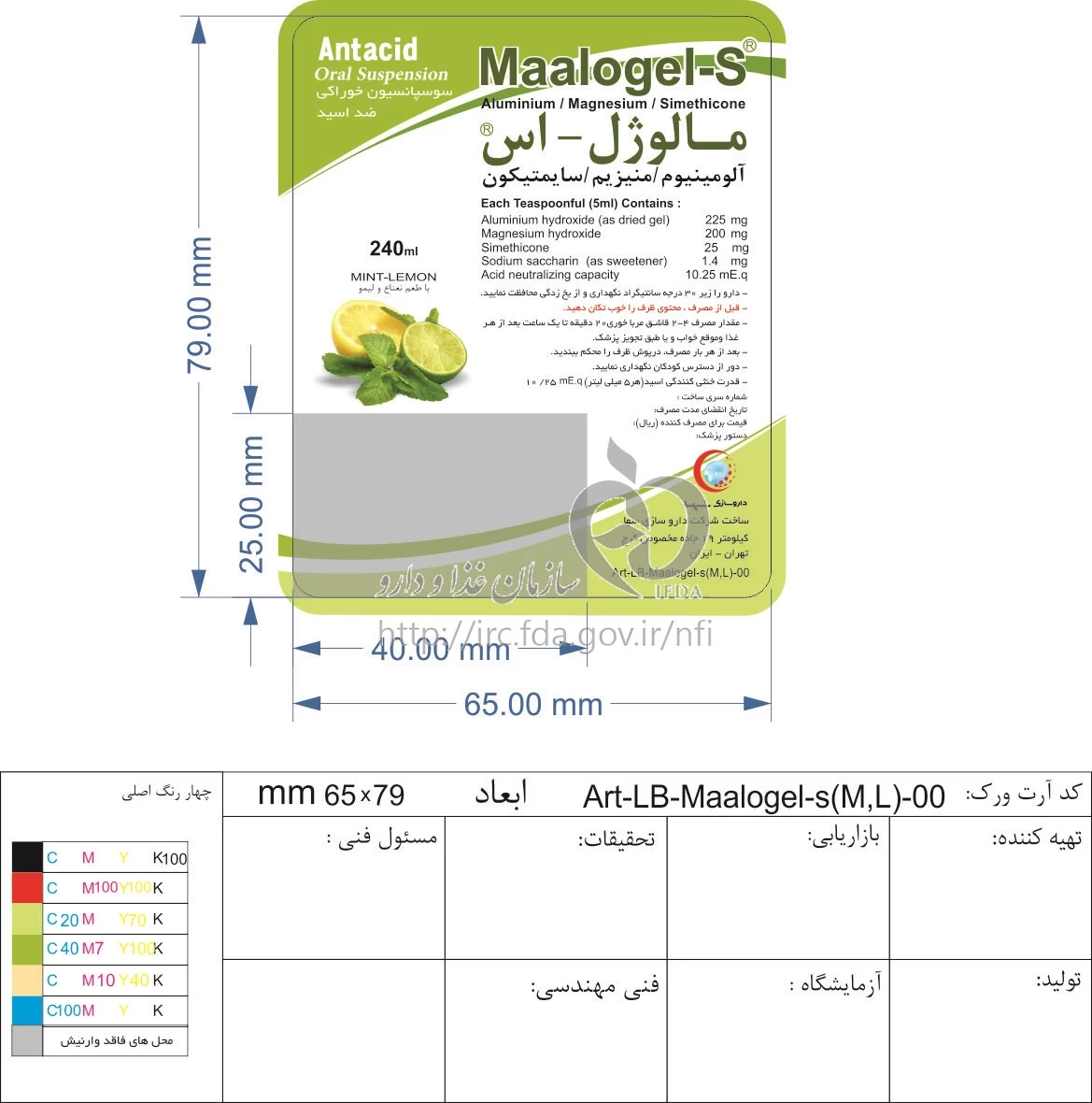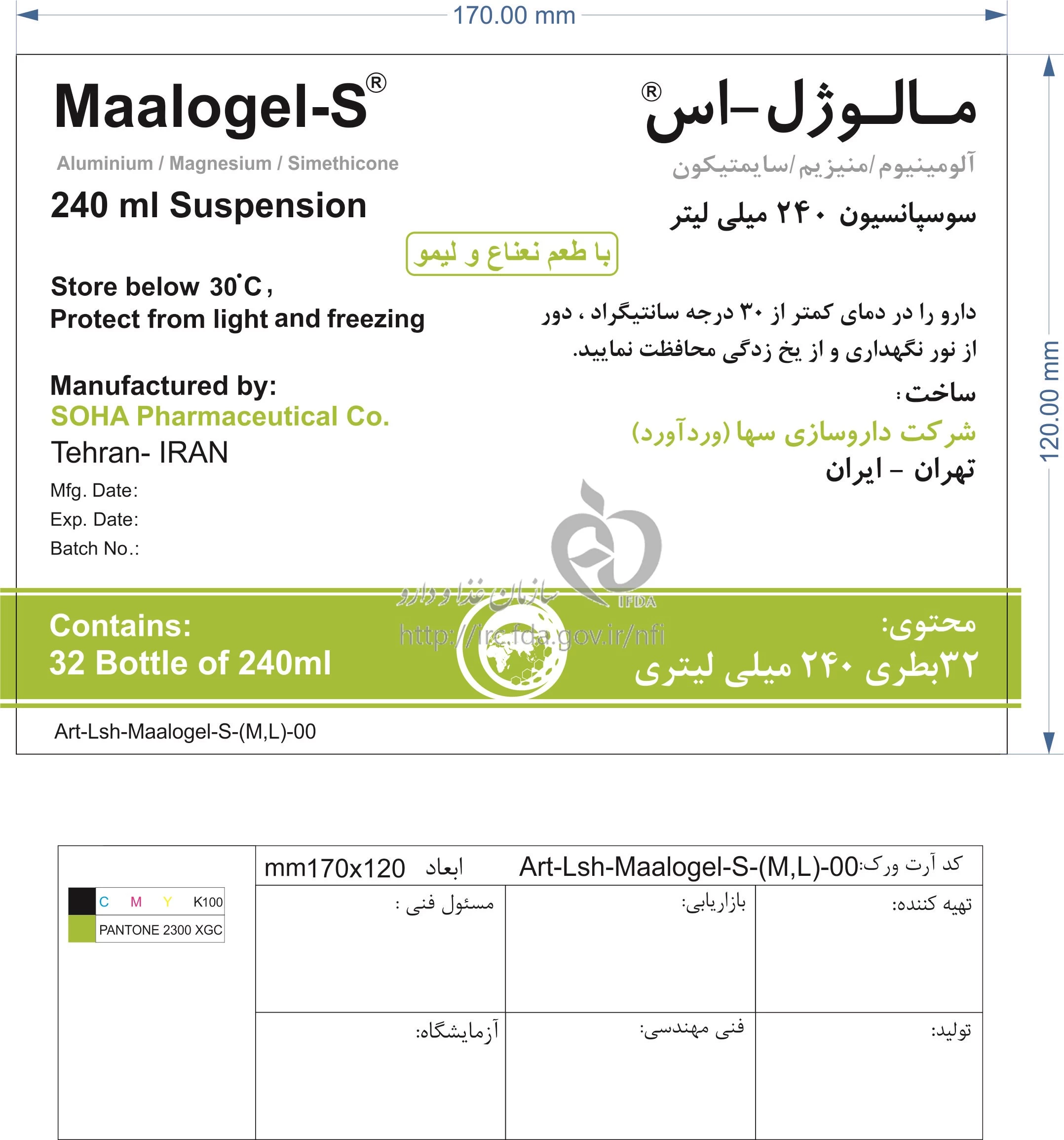 مالوژل - اس سوسپانسیون خوراکی 225 mg/200 mg/25 mg/5mL 240MILLILITER