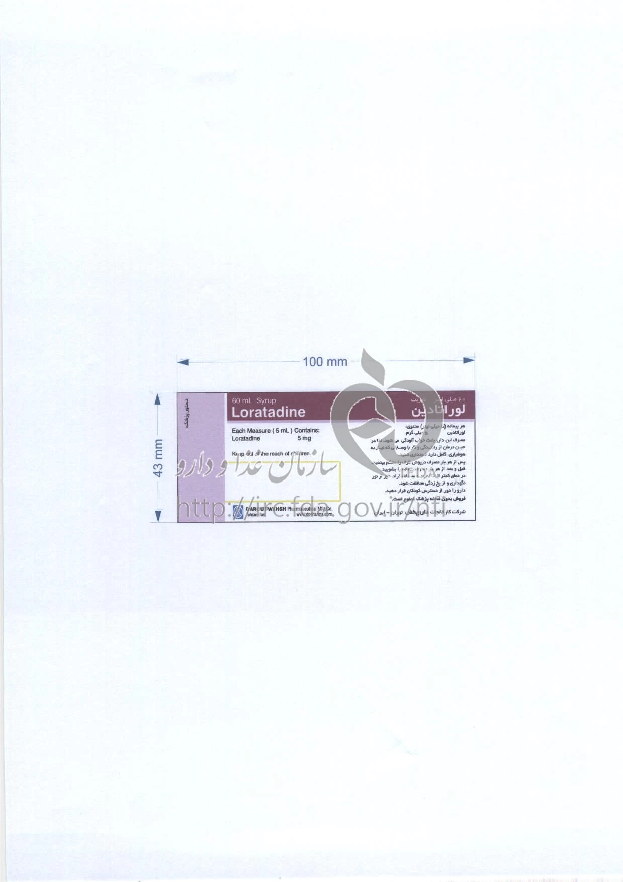 لوراتادین شربت خوراکی 5 mg/5 mL 60MILLILITER