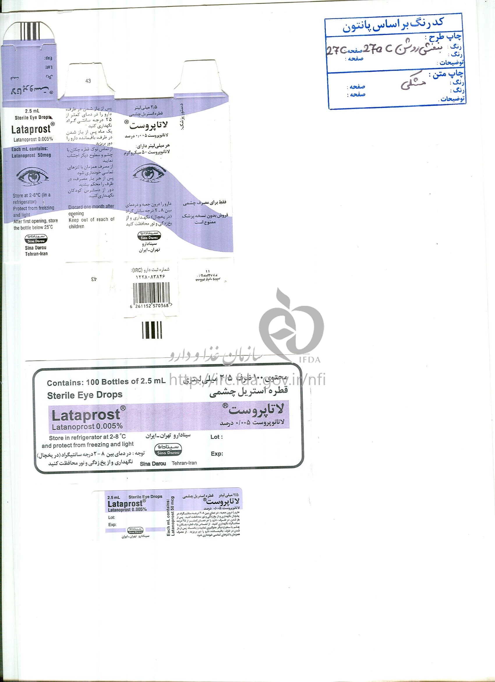 لاتاپروست محلول ، قطره چشمی 50 ug/1mL 2.5MILLILITER