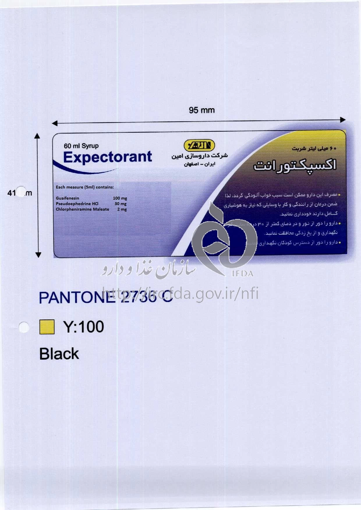 اکسپکتورانت شربت خوراکی 100 mg/2 mg/30 mg/5mL 60MILLILITER