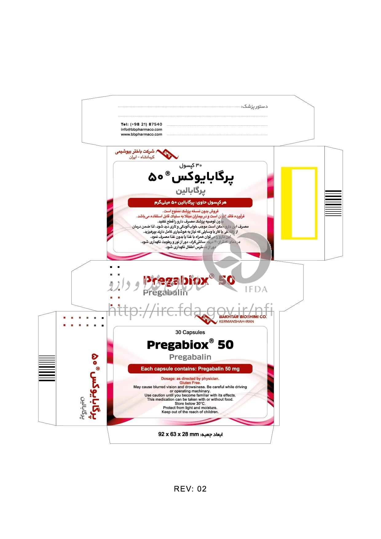 موارد مصرف پرگابایوکس کپسول خوراکی 50 mg