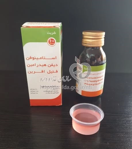 موارد مصرف ، عوارض جانبی ، مصرف بارداری و تداخلات دارویی استامینوفن/ دیفن هیدرامین/ فنیل افرین شربت خوراکی 160 mg/12.5 mg/2.5 mg/5mL 60MILLILITER