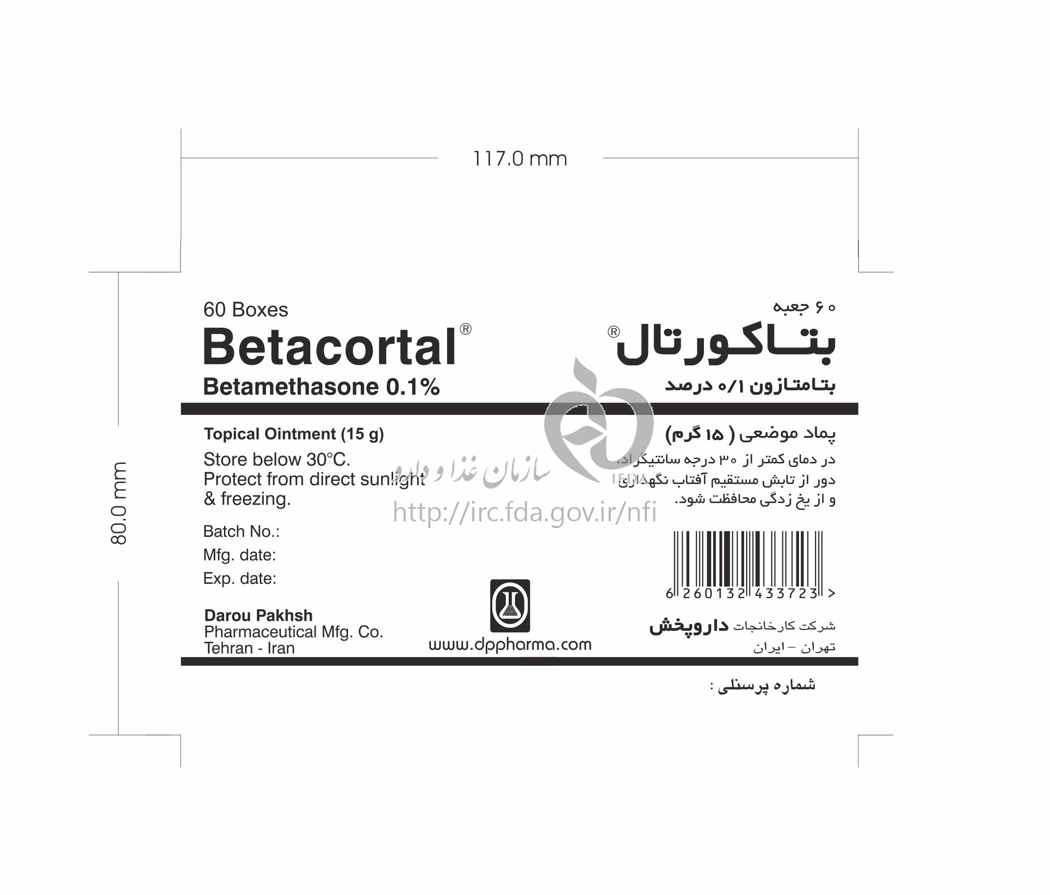 بتاکورتال پماد موضعی 0.1 % 15GRAM