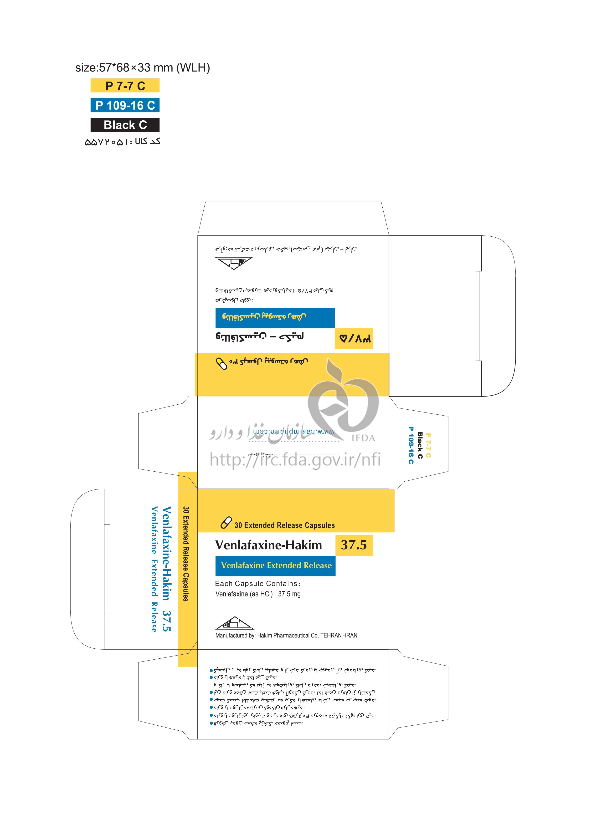 ونلافاکسین - حکیم کپسول پیوسته رهش خوراکی 37.5 mg