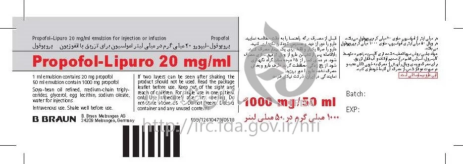 پروپوفول - لیپورو امولسیون تزریقی پرنترال 20 mg/1mL 50MILLILITER