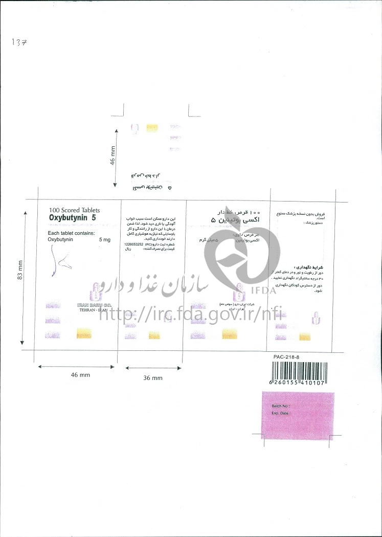 موارد مصرف اکسی بوتینین قرص خوراکی 5 mg