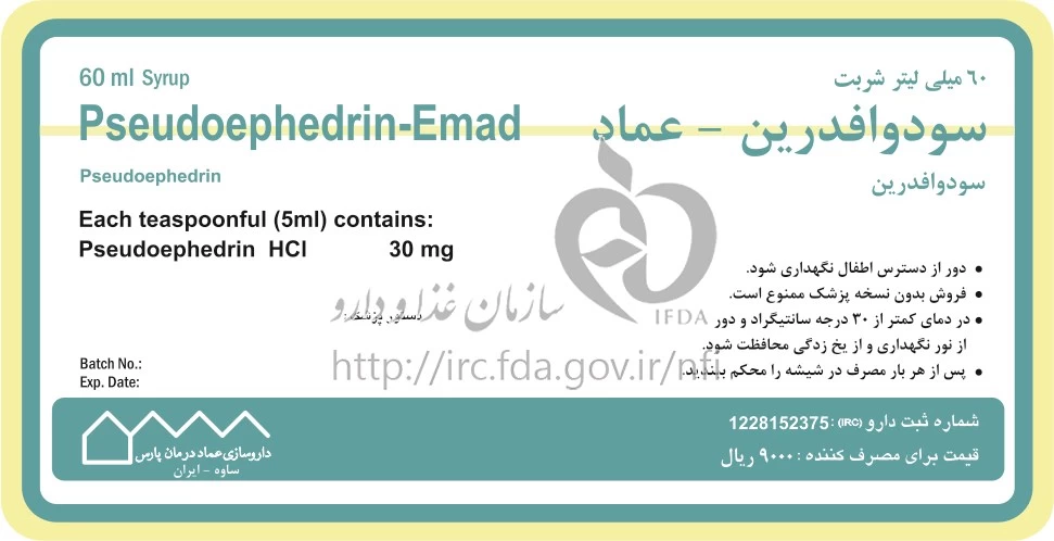 سودوافدرین - عماد شربت خوراکی 30 mg/5mL 60MILLILITER